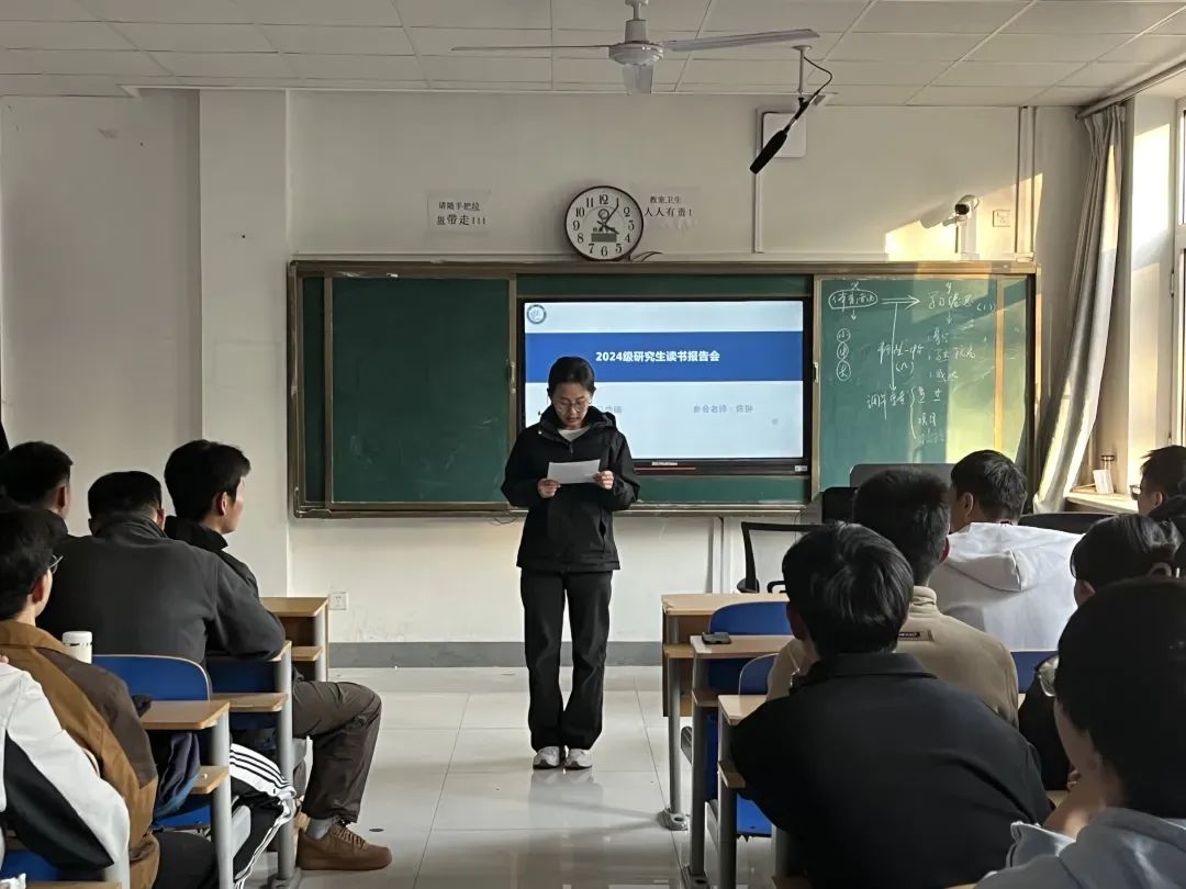为丰富研究生精神内涵和文学修养,引导学生养成良好阅读习惯,进一步营造浓厚的学习氛围,11月6日下午在5-110教室开展太阳成集团tyc122ccvip研究生读书报告会,本次活动由2024级研究生马晓晴主持,太阳成集团tyc122ccvip副院长陈翀,2023级部分学生以及2024级全体研究生出席本次会议,2024级研究生吴俊龙、陈亭振、许振邦、许颖进行了相关汇报。