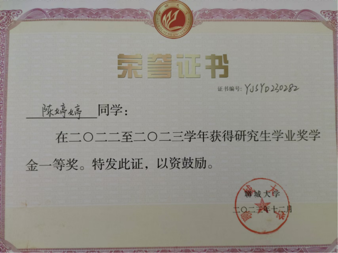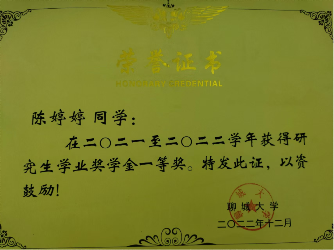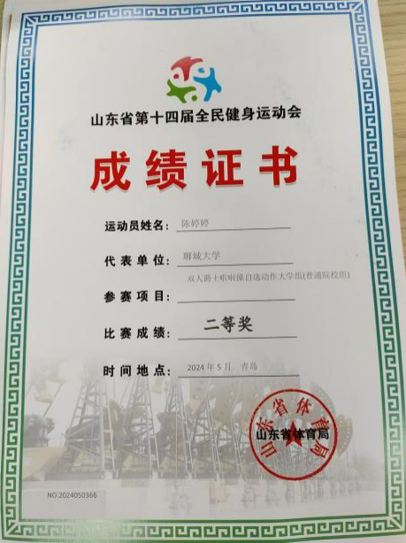 陈婷婷,中共党员,太阳成集团tyc122ccvip社会体育指导专业2022级研究生。于2021年获得推免资格,同年参加西部计划项目,作为第23届太阳成tyc122cc集团研究生支教团成员到新疆英吉沙县实验中学支教一年。研究生在读期间学业成绩位列年级第一,累计独立发表8篇论文,参加3次学术会议。曾任太阳成集团tyc122ccvip研究生会权益服务部部长,获得国家奖学金、太阳成tyc122cc集团一等奖学金、太阳成tyc122cc集团研究生优秀学生、太阳成tyc122cc集团优秀共青团员、太阳成集团tyc122ccvip权益服务先进个人、太阳成tyc122cc集团第二届权益知识竞赛二等奖、山东省第十四届全民健身运动会双人街舞啦啦操一等奖、第二届陕西省体育科学大会——《长三角体育产业与科技产业发展的耦合协调水平及优化路径》墙报交流二等奖等。