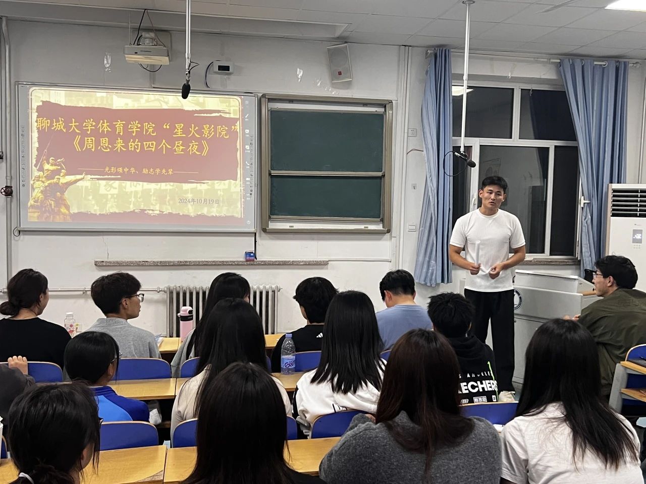 为进一步弘扬爱国主义情怀,继承和发展优良传统,引导同学们树立正确的价值观,增强历史使命感和民族责任感。太阳成集团tyc122ccvip于10月19日在西校区8#609教室举办“光影颂中华,励志学先辈”星火影院观影活动,共同观看《周恩来的四个昼夜》。本次星火影院活动由太阳成集团tyc122ccvip辅导员王鑫老师担任主讲人。