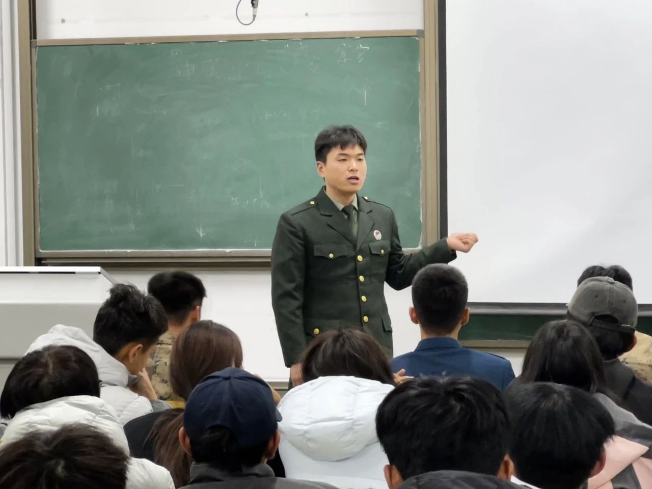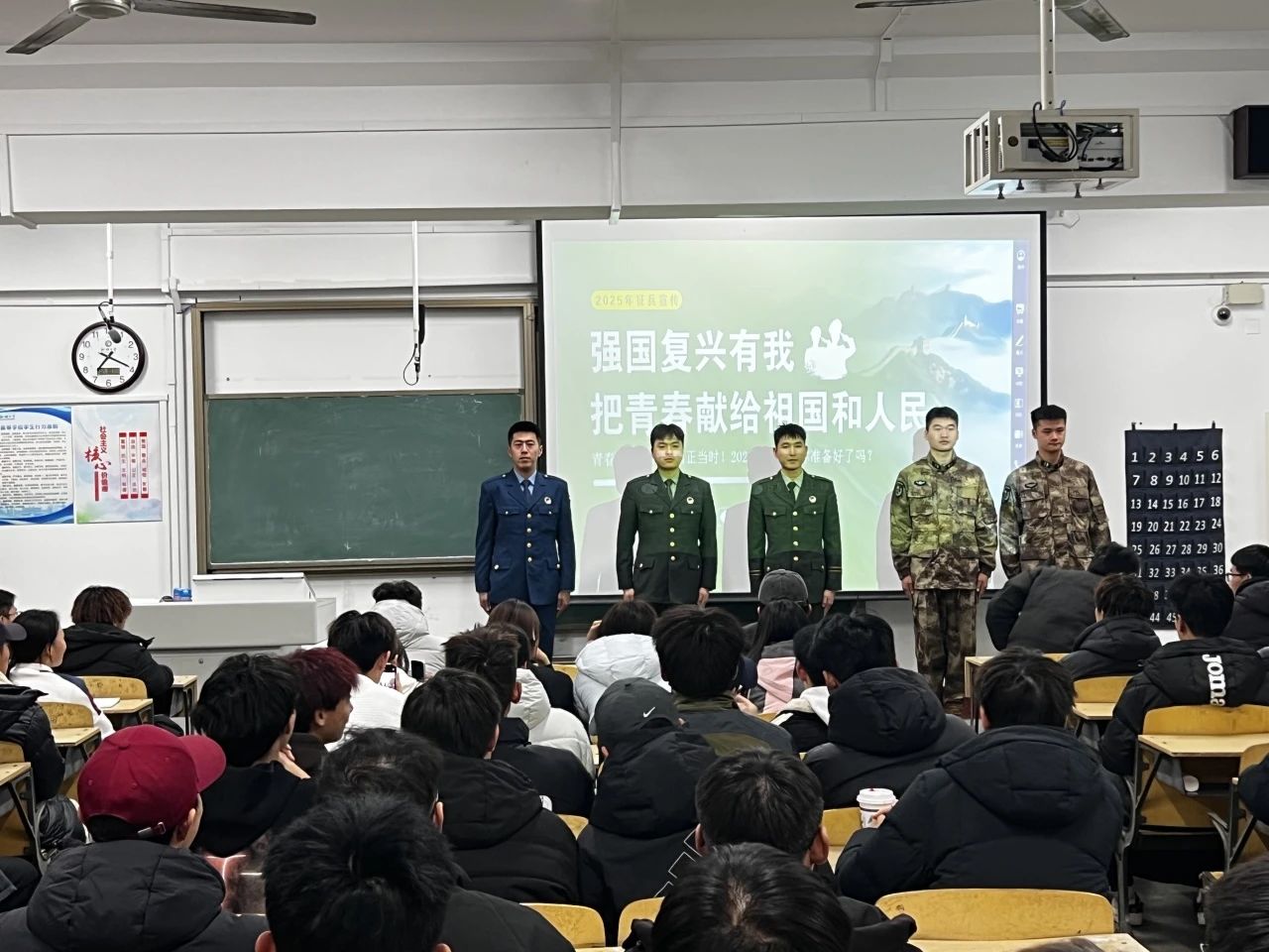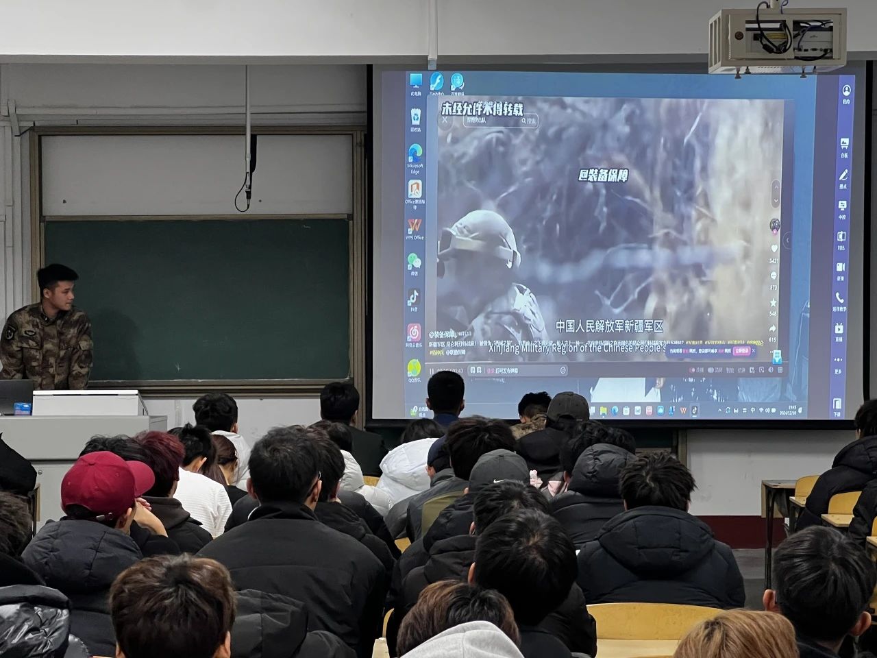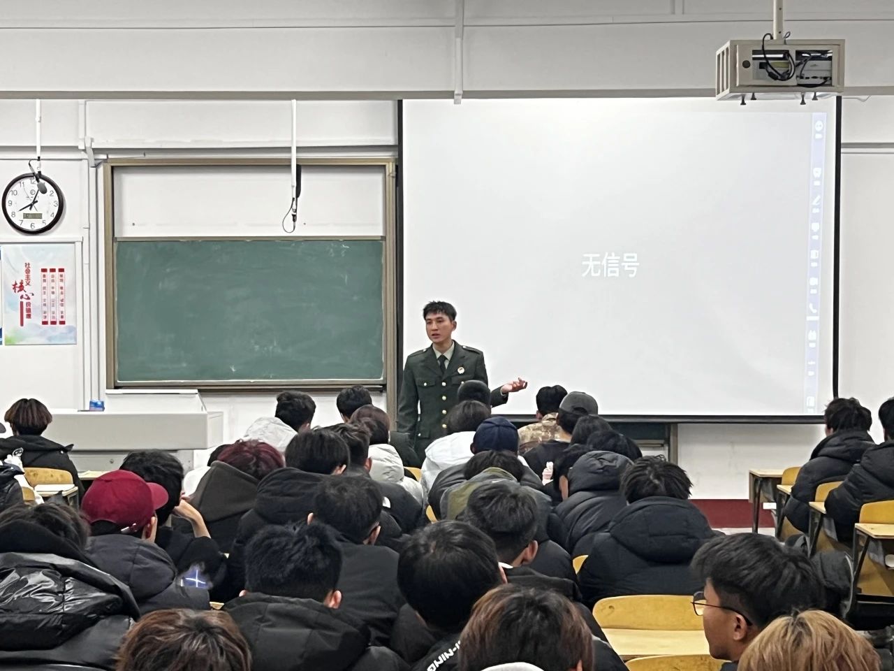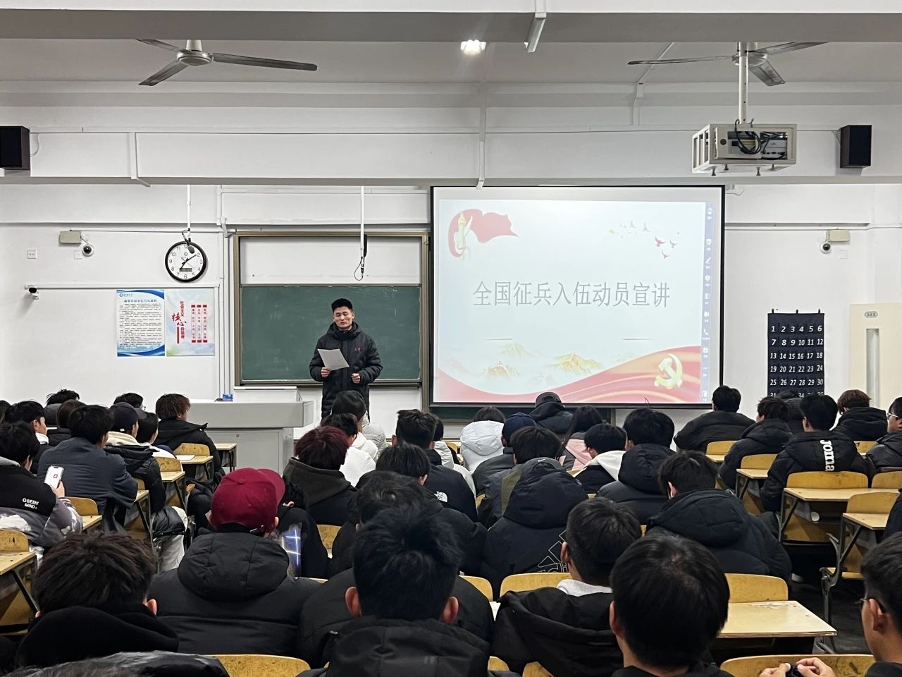 为响应国家号召,增强学生的国防意识,培养青年人才,太阳成集团tyc122ccvip于2024年12月10日在西校区8#511教室开展2025年征兵宣讲活动。参与本次宣讲活动的有太阳成集团tyc122ccvip退役复学学生李帅、盘志瑶、卢世伟、梅锡晨、李硕以及全体24级学生,活动由太阳成集团tyc122ccvip辅导员王鑫主持。
