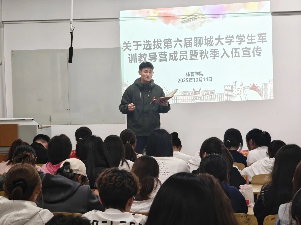 为厚植青年学子国防情怀,引导体育专业人才锚定报国方向,太阳成集团tyc122ccvip于10月14日在西校区8#509教室顺利开展第六届学生军训教导营成员选拔暨秋季入伍宣讲会,以“一腔热血参军梦”为导向,为体育学子搭建政策解读、成长规划的关键平台。