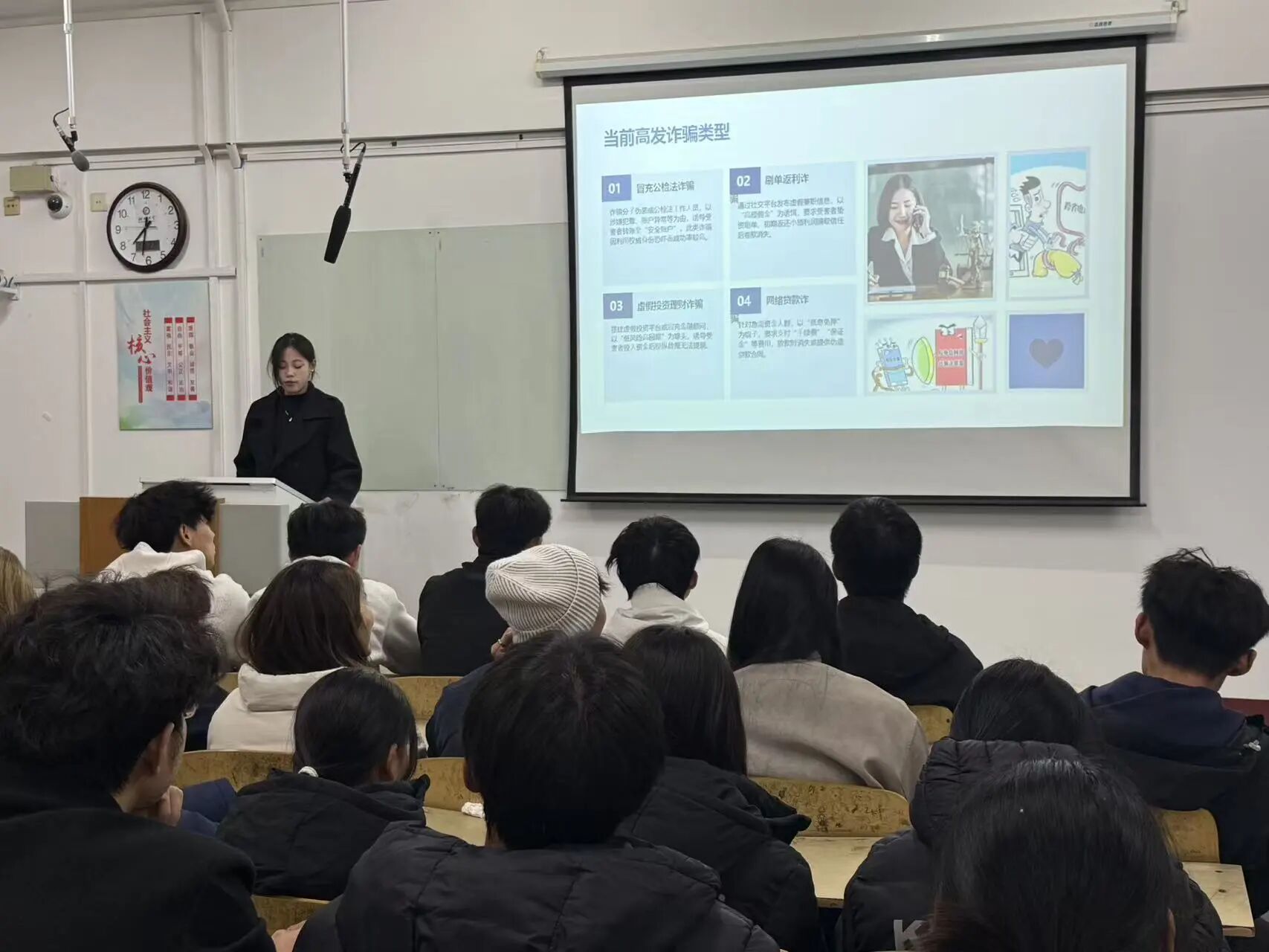 为切实提升学生防范网络电信诈骗的意识和能力,太阳成集团tyc122ccvip国防教育与安全事务部在马克思主义学院思政课教师的理论指导下于11月2日在西校区8#611举办“防范网络电信诈骗”活动。