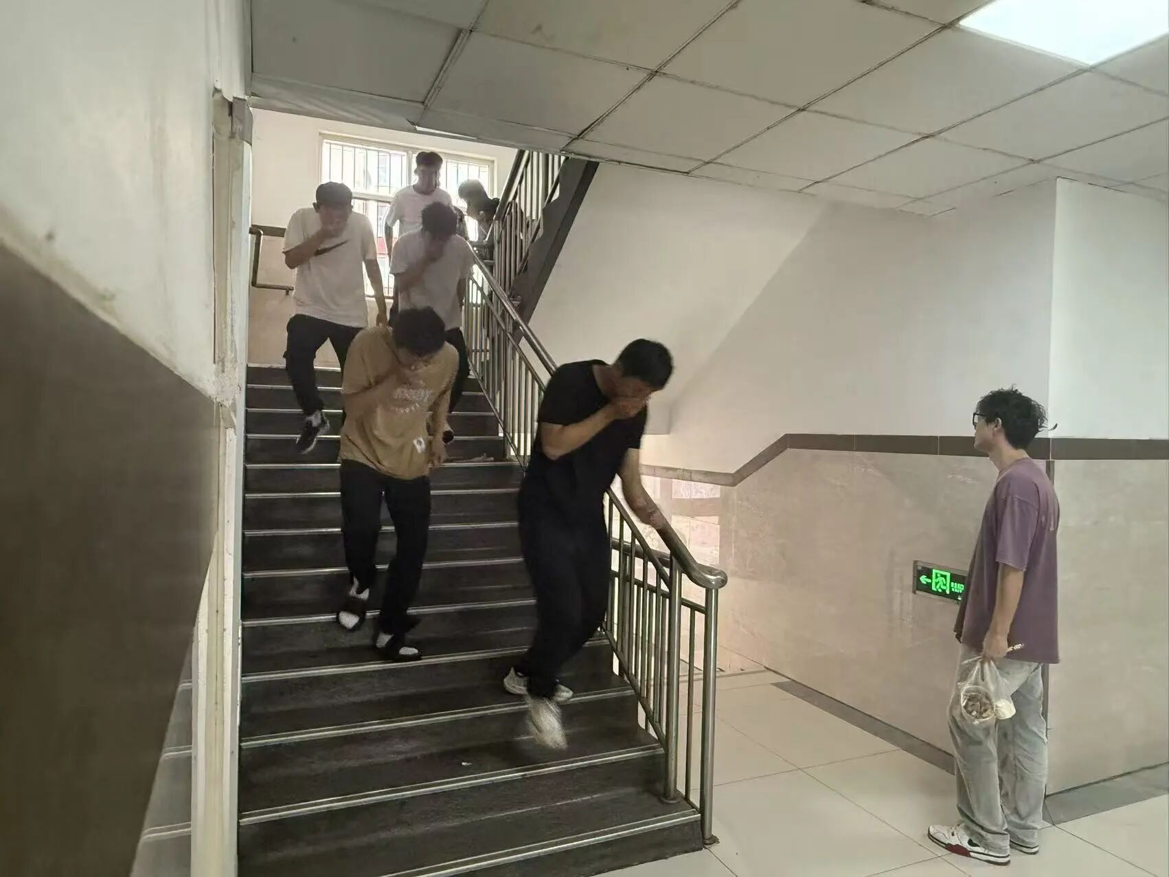 随着消防警报声响起,演练正式开始。同学们在志愿者引导员的指挥下,迅速用湿毛巾捂住口鼻,弯腰低姿沿预定疏散路线快速移动,避开楼道拐角和狭窄通道,有序撤离至安全区域。到达集合点后,各班迅速清点人数并上报指挥部,确保无人员遗漏。期间,工作人员还模拟了“被困楼层”场景,演示了窗口求救、湿毛巾封堵门缝等避险技巧,帮助学生掌握复杂情况下的逃生方法。