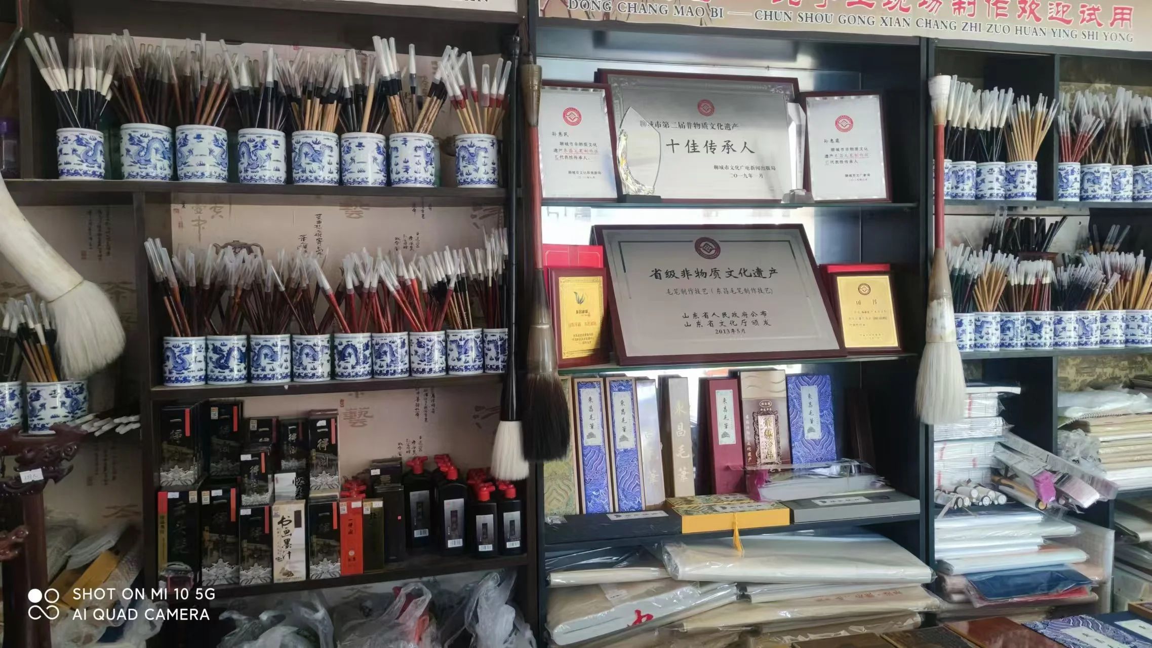 东昌毛笔以其选料精良、做工精细、锋长杆硬、刚柔相济的特点,备受文人墨客的推崇。它不仅有“含墨多而不滴,行笔畅而不滞”的书写效果,更承载着聊城这座城市的文化内涵。