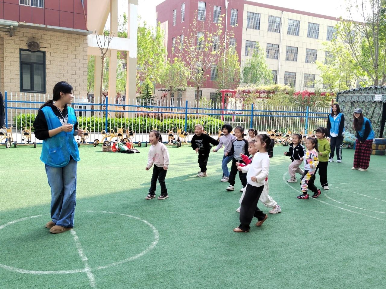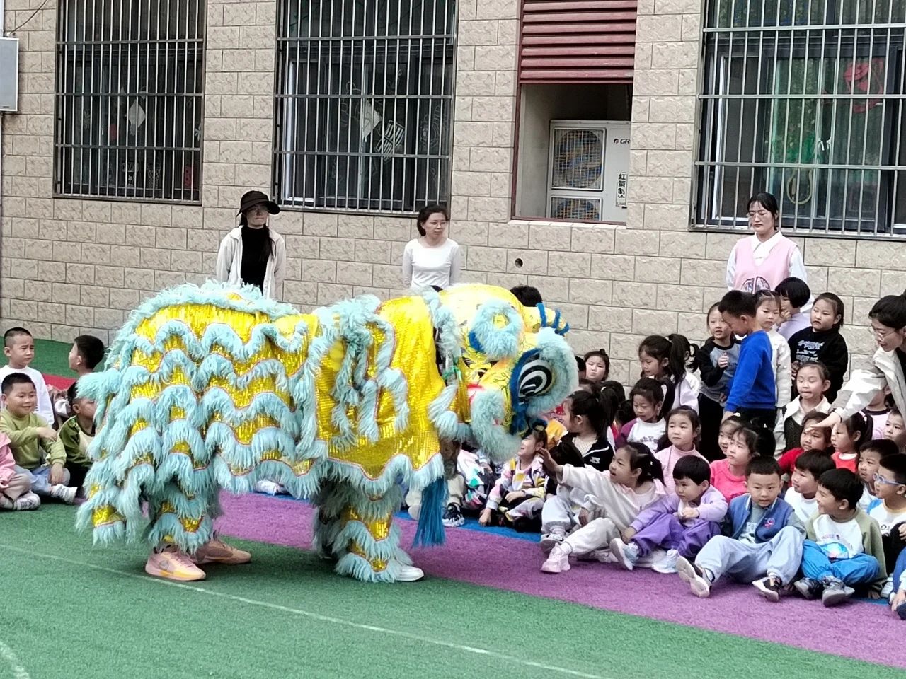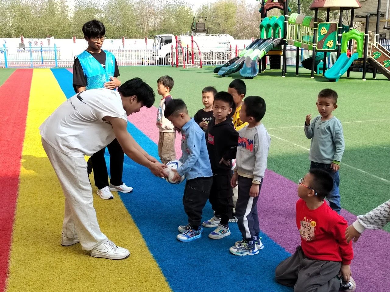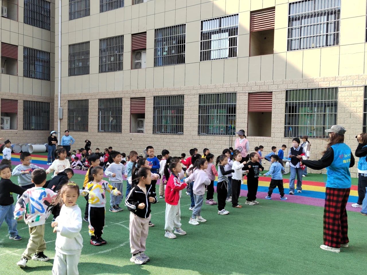 活动伊始,一段精彩的舞狮表演瞬间点燃现场气氛 。在互动环节,小朋友们踊跃上台,近距离观察舞狮道具。龙狮社团的同学为孩子们讲解了狮子的制作过程、舞狮历史文化,还耐心教孩子们简单动作。除了舞狮体验,活动还设置了丰富的体育游戏。志愿者将孩子们分成若干队伍,开展了垫球、射门、跳绳等个人项目,以及足球比赛、多人跳绳等团队项目,有效锻炼了孩子们的运动技能与团队协作能力。