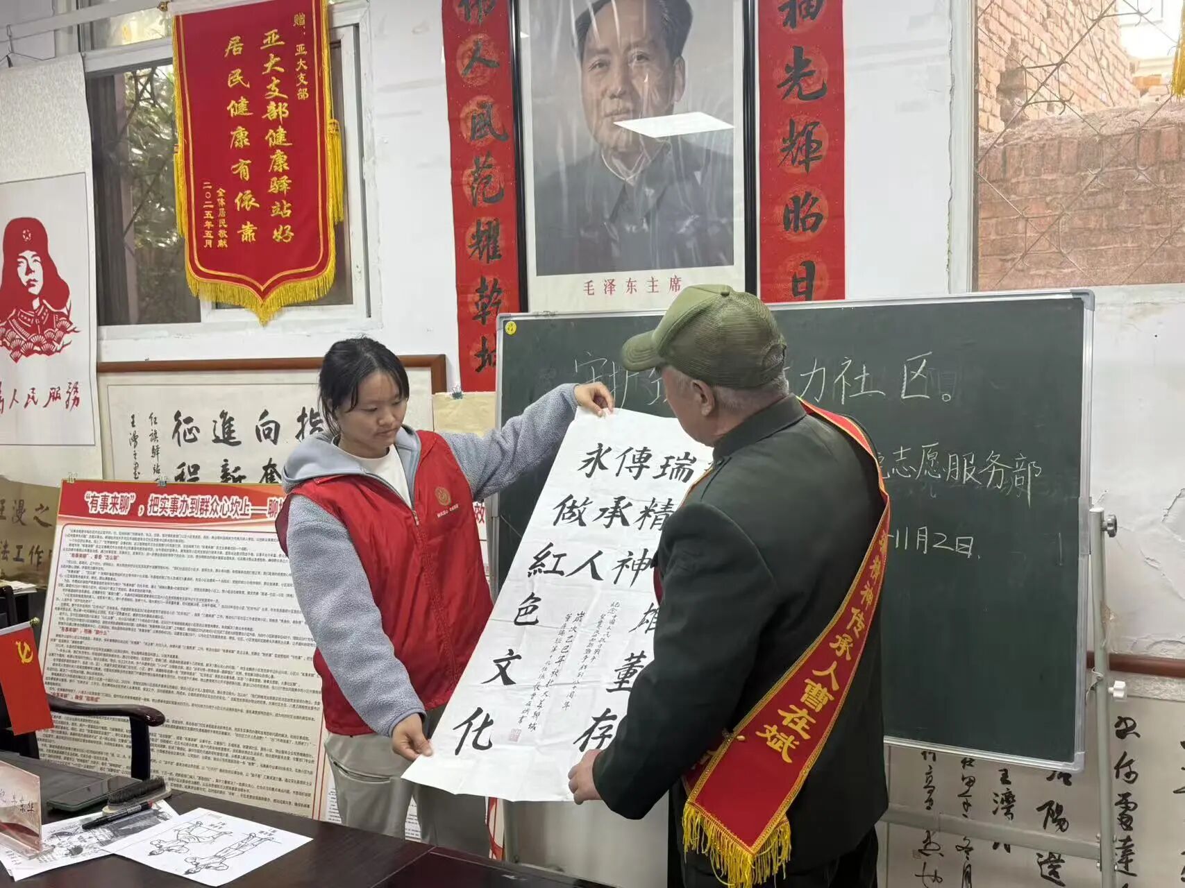 活动接近尾声时迎来温情一幕,一位老革命者向志愿服务者赠送了一幅亲手绘制的画作,以此表达对学子们热心服务的感谢与鼓励。这一环节将现场气氛推向高潮,居民们畅谈活动感受,欢声笑语不断。此次互动不仅普及了健康知识,更是营造了文明和谐的社区氛围。