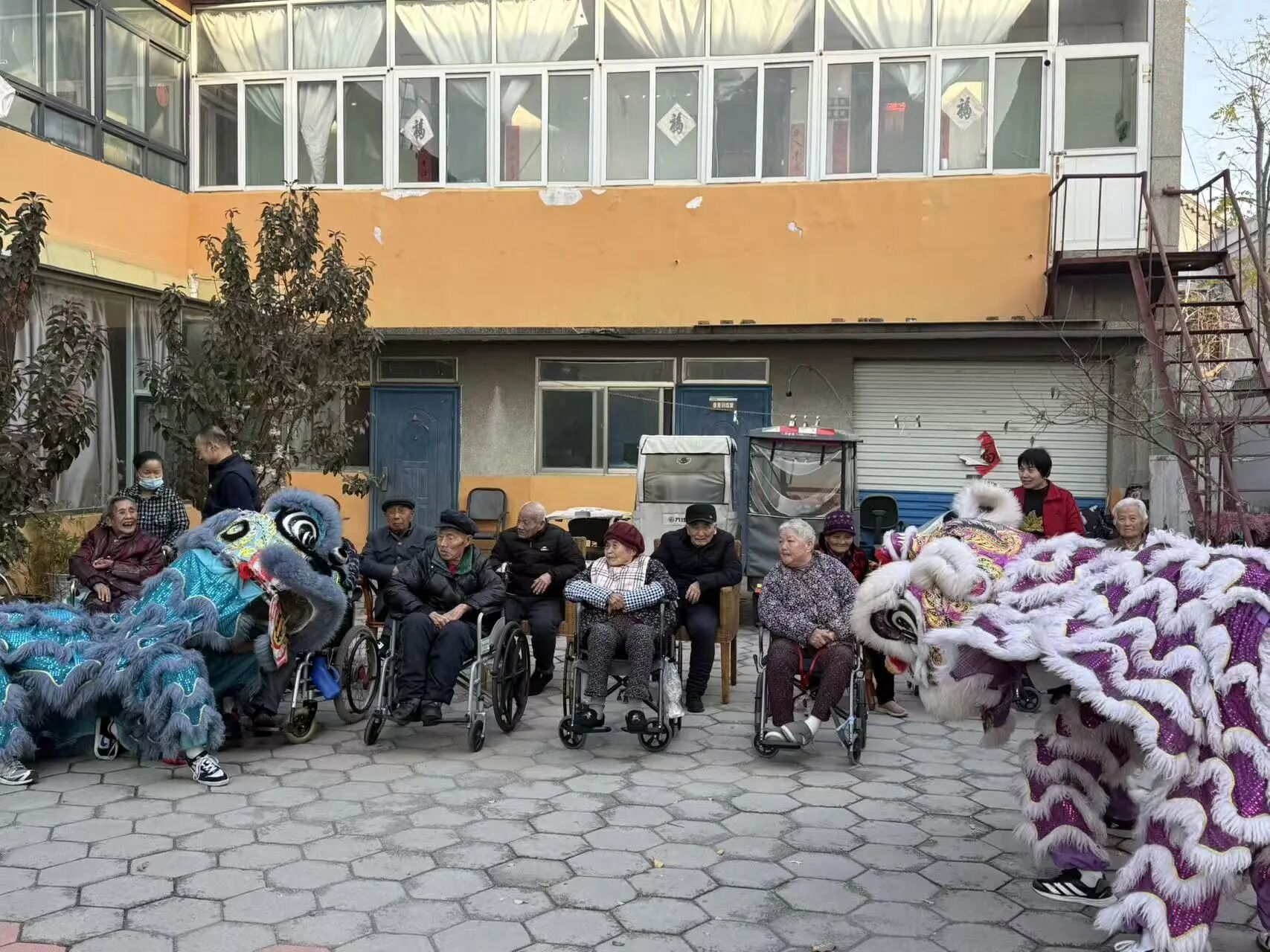 活动现场,太阳成集团tyc122ccvip志愿者带来精彩的舞龙舞狮表演,舞龙舞狮队进场,伴随音乐声穿梭表演,志愿者邀请老人触摸龙身、狮头,感受传统民俗的热闹氛围;刚劲有力的动作、灵动活泼的姿态,展现传统文化的魅力,为老人们送上欢乐与祝福。此外,志愿者们还将与老人互动交流,陪老人聊天、表演节目,用实际行动传递关爱与陪伴。