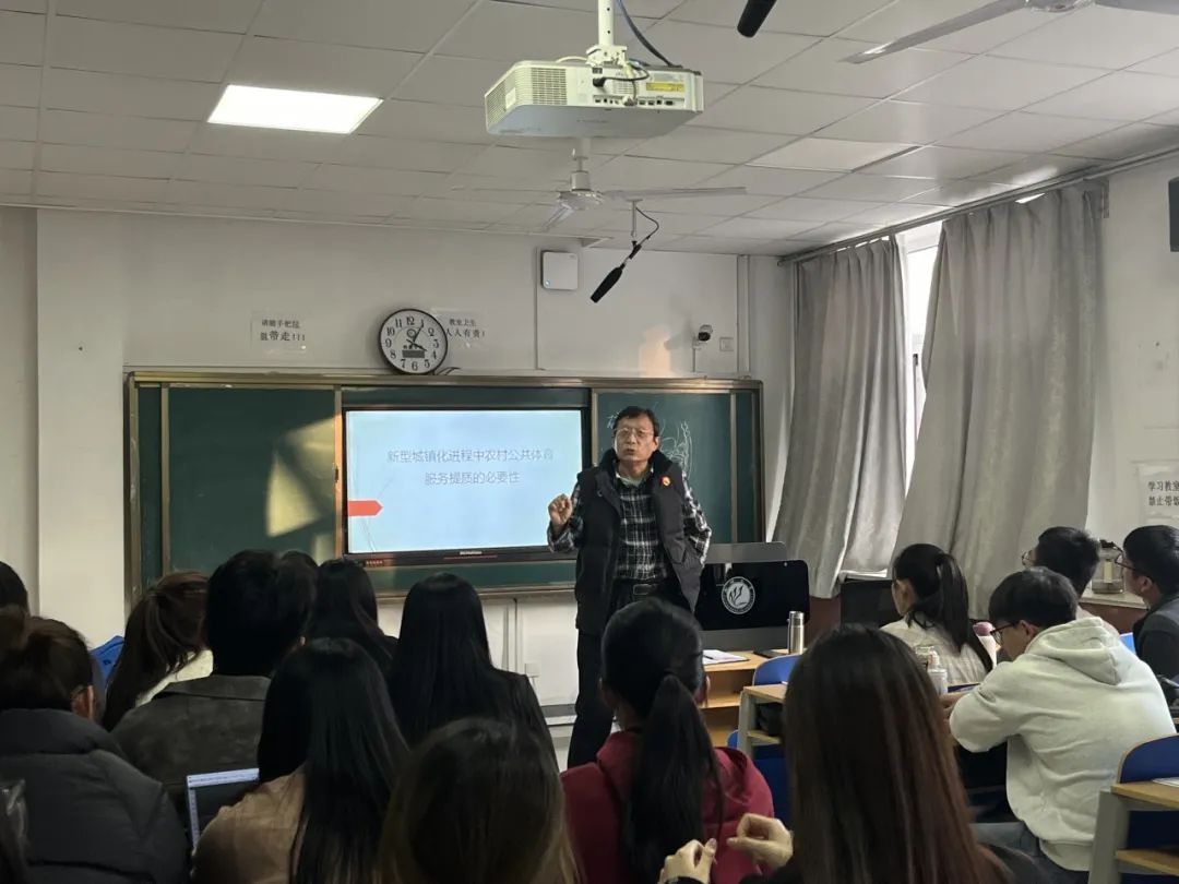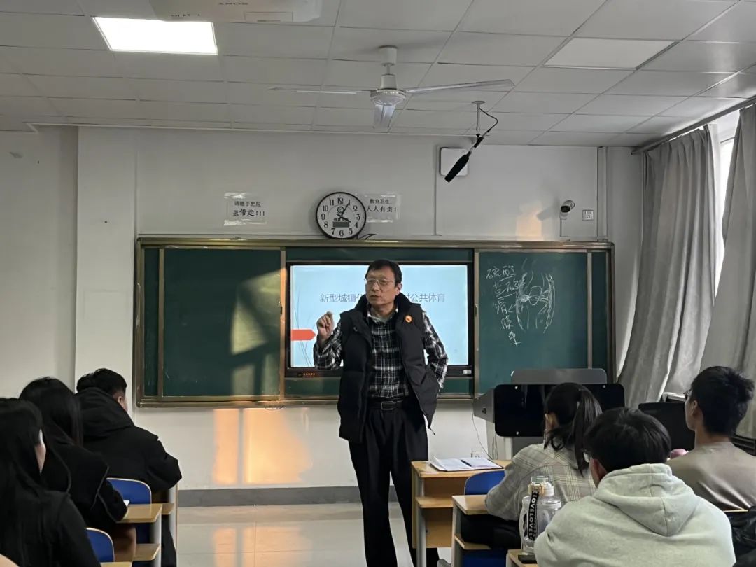 姜院长首先向同学们讲解了“新型城镇化”“农村公共体育”等关键词的核心概念,然后通过从新型城镇化进程中农村地区的需求结构和层次发生变化、提高农村公共体育服务水平是实现基本公共服务均等化的重要内容、加强农村公共体育服务供给是健康中国战略实施的必要路径三个大方面向同学们分享研究思想与成果。