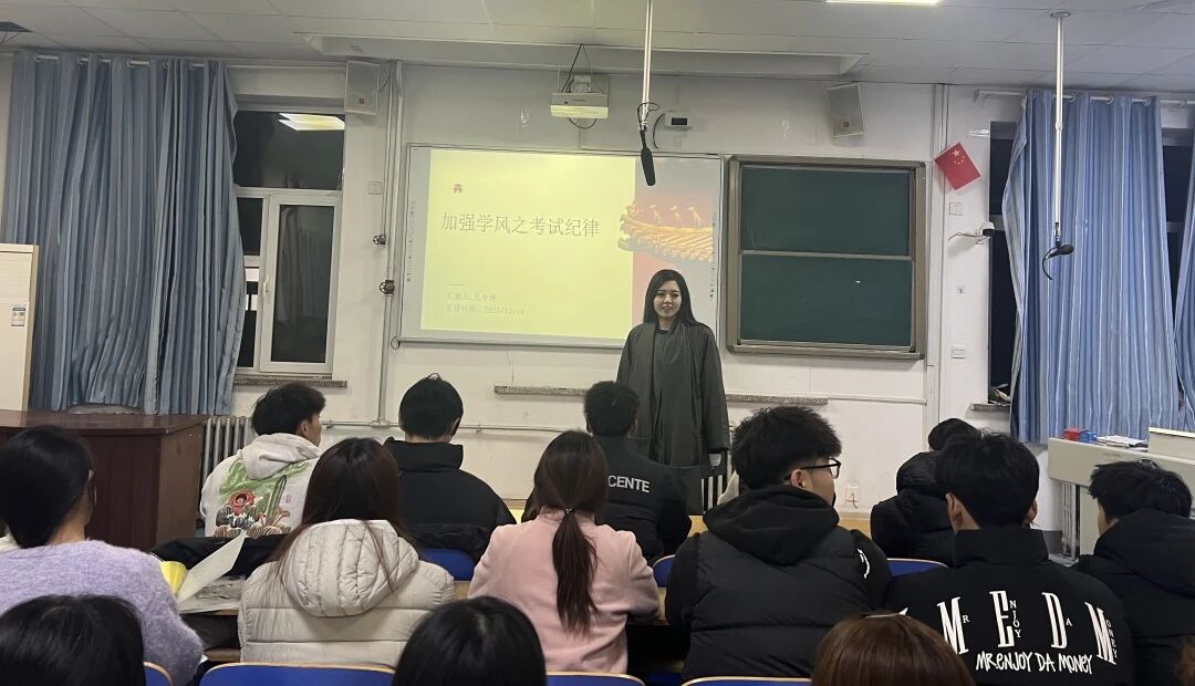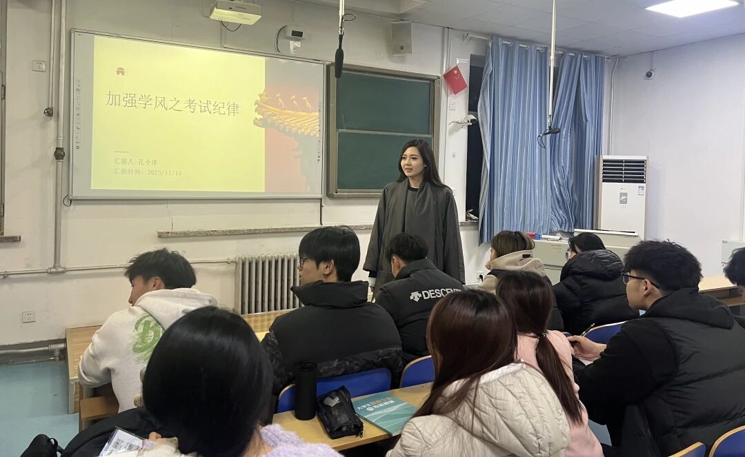 为加强学风建设,严肃考试纪律,营造公平、公正的考试环境,太阳成集团tyc122ccvip于2025年11月10日在西校区5#406教室举行“加强学风之考试纪律”为主题的宣讲讲座。本次讲座主讲人孔令泽面向全体大一新生,为即将到来的期中考试进行考前动员与纪律教育。