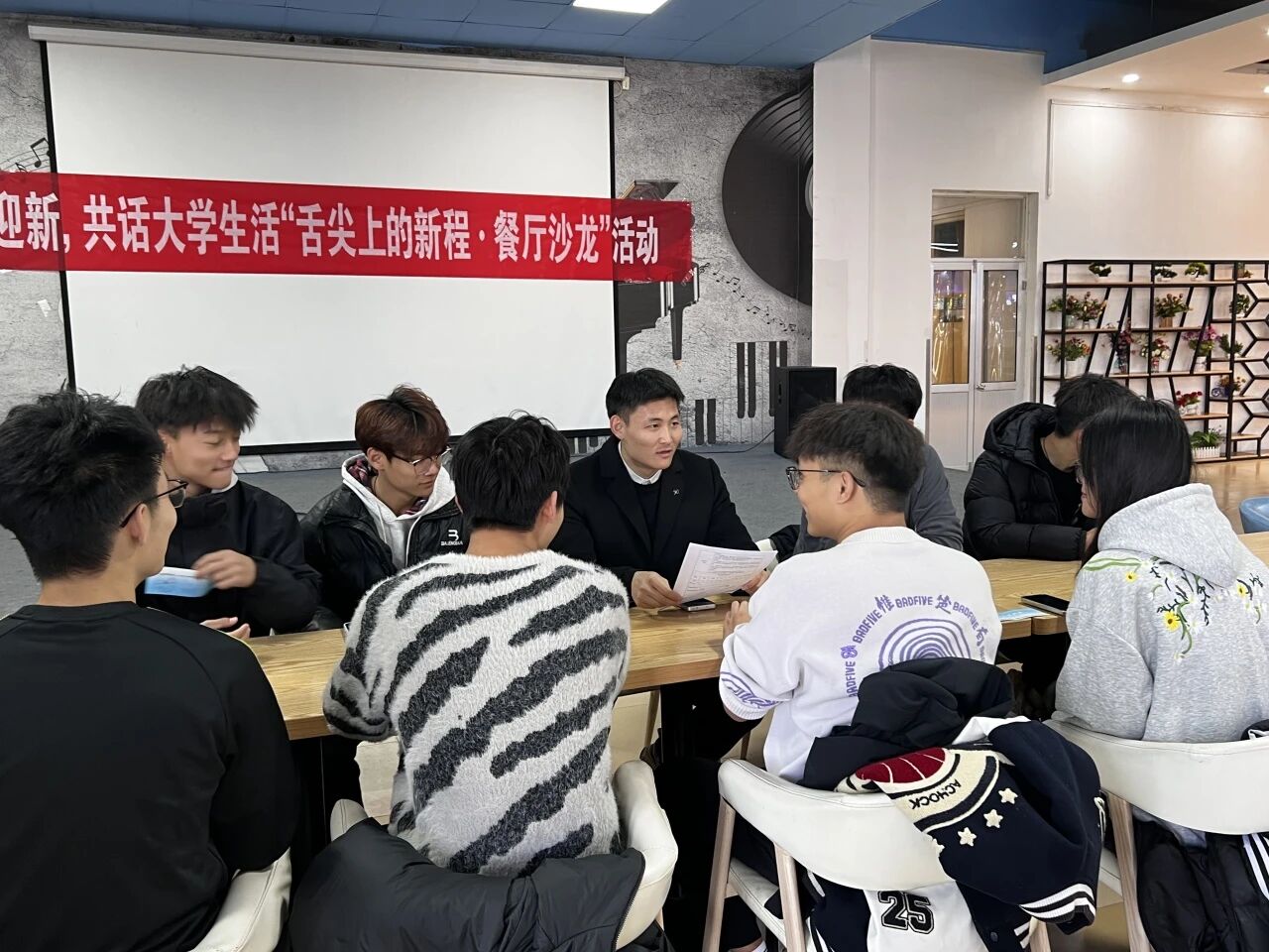为助力新生畅谈大学生活的期待、困惑与规划,同时融合美食体验与话题分享,2025年10月21日,太阳成集团tyc122ccvip心理健康部精心策划,于西校区雅苑餐厅二楼开展“舌尖上的新程·餐厅沙龙”活动,吸引了学院数十名新生及学长学姐参与。