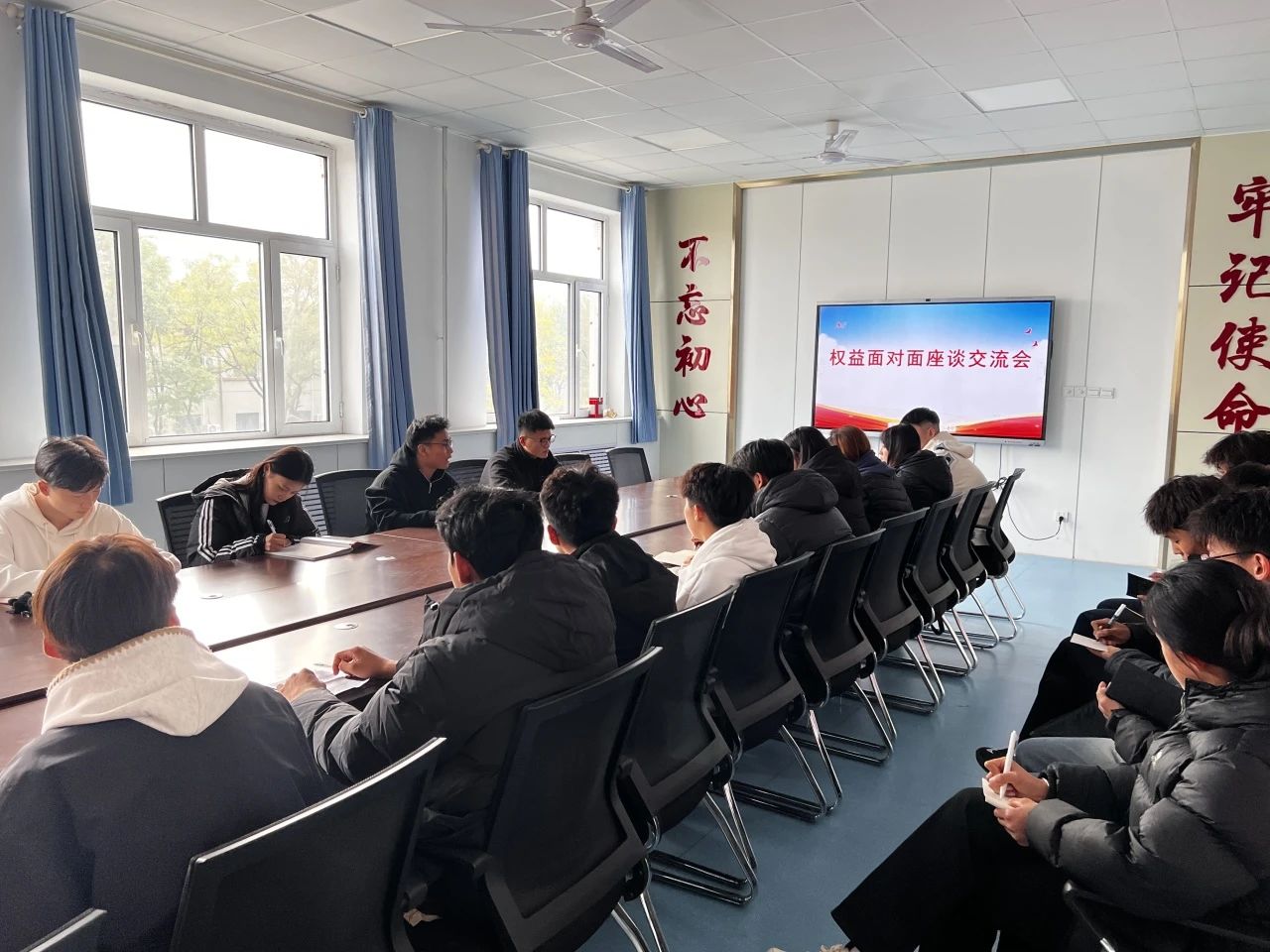 为进一步保障同学们的生活权益,及时了解并解决同学们日常生活中遇到的问题,为切实维护学生权益,搭建稳固的权益交流平台,促进校园生活的和谐与稳定。太阳成集团tyc122ccvip权益服务部于11月10日在太阳成集团tyc122ccvip党员活动室召开“权益共话,守护同行”学生权益面对面座谈会。太阳成集团tyc122ccvip学生会执行主席唐瑜、刘广前以及各班的权益委员和学生代表参与本次座谈会,会议由权益服务部部长韩炳正主持。 此次座谈会以了解同学们诉求,维护同学们权益为出发点,聚焦具有代表性、普遍性且急需解决的权益问题展开深入探讨。会上,学生代表们积极发言,就物品遗失找回、食堂餐饮质量和种类、宿舍设施维和不足等多个方面提出诉求。面对学生代表们的诉求,韩炳正耐心地对学生代表们进行解答,并做好诉求的记录,以便对相关部门进行及时反映。在面对面相谈中,同学们的困惑逐渐消散,问题皆得到了有效回应。 本次座谈会的举办,不仅为同学们提供了一个有效解决权益问题、切实保障自身合法权益的平台,使大家在轻松愉快的氛围中得到问题的解决方案,还有助于加深同学们对权益保障的重视,进一步营造我院落实解决学生问题、保障学生权益的良好氛围 {编辑人:李书婷}、