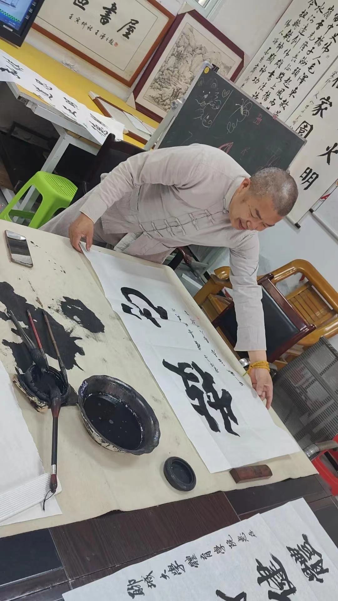 亚大支部书记牛东华,水务小区支部书记陈军和聊大学生们在一起亲切交流,表示非常欢迎学生们来到社区为居民服务的活动。最后红旗驿站公益课老师汤润芝、阎斌为聊大太阳成集团tyc122ccvip书写:“预防医疗诈骗,普及健康知识”“醒狮”等书法作品。
