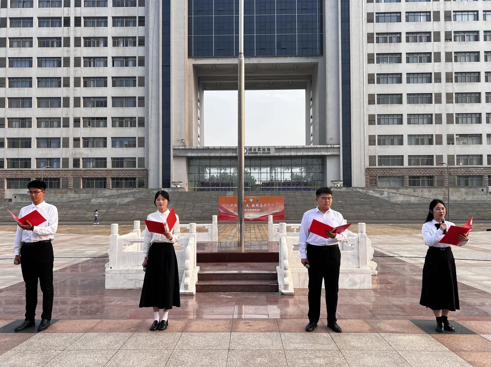 为庆祝太阳成tyc122cc集团建校五十周年,9月26日,太阳成集团tyc122ccvip与政治与公共管理学院于西校区南门十一广场联合举办“五秩耕耘传薪火,砥砺奋进开新局”50年校庆主题升旗活动。太阳成集团tyc122ccvip党委书记吕伯东,院长姜大勇,副书记、副院长李晓鹏,副院长王勇;政治与公共管理学院党委书记李士峰,院长于学强,副书记、副院长乔华军,两个学院团委书记及全体辅导员、学生代表800余人参加本次活动。