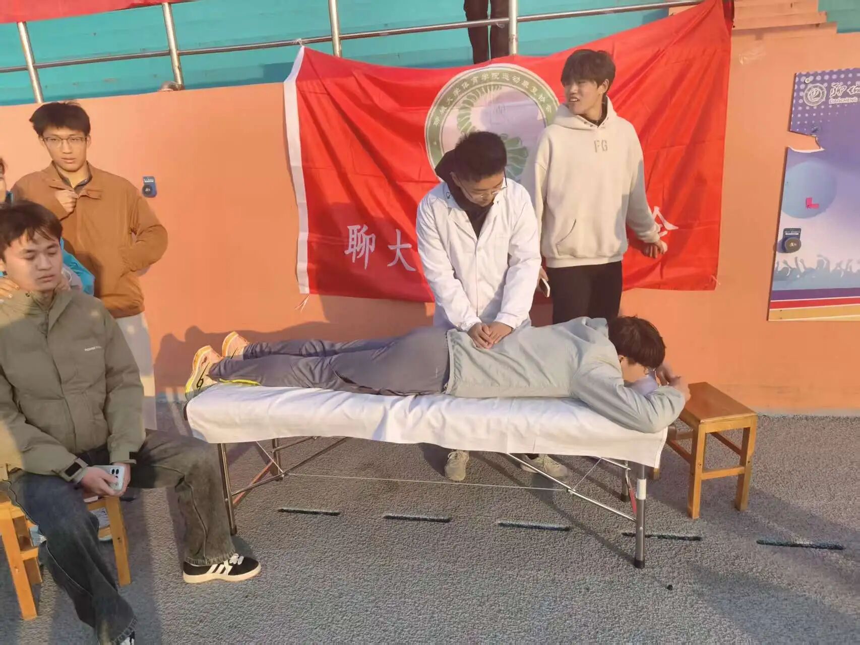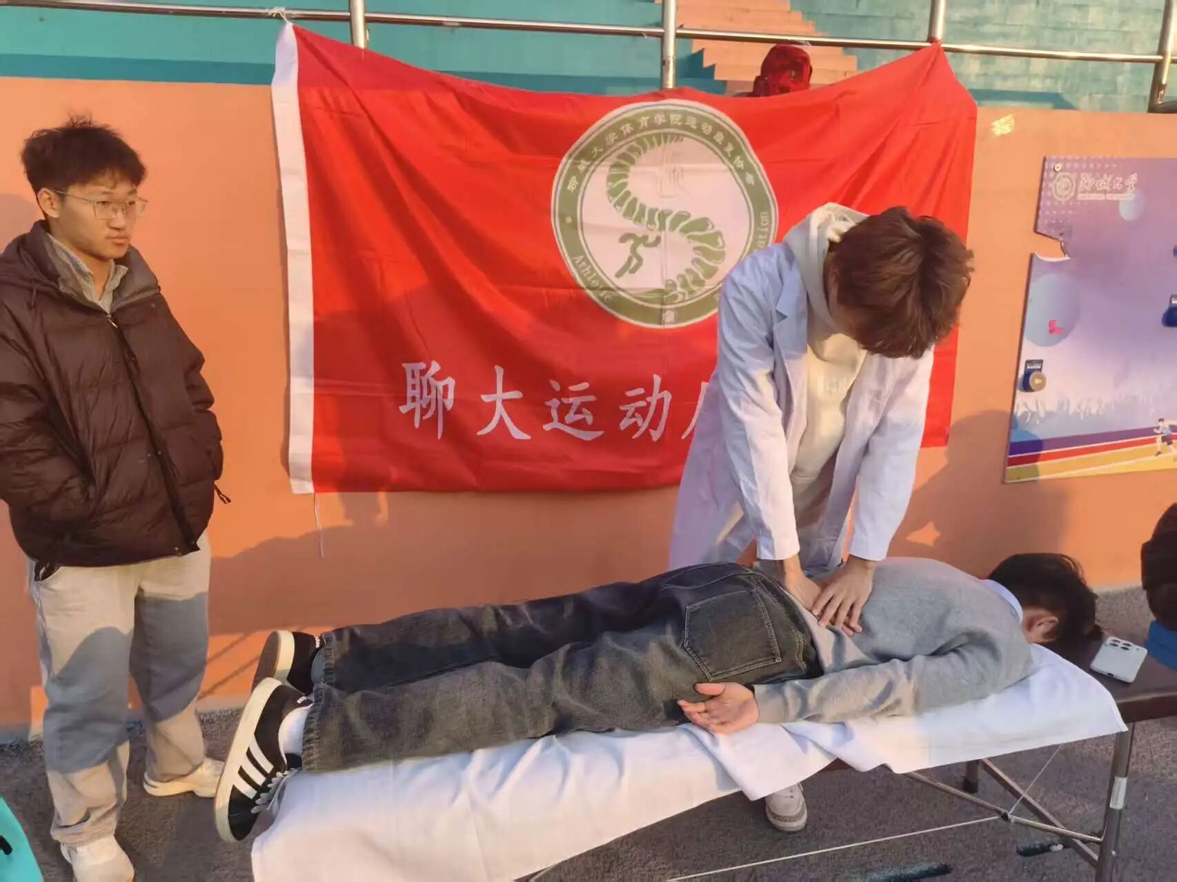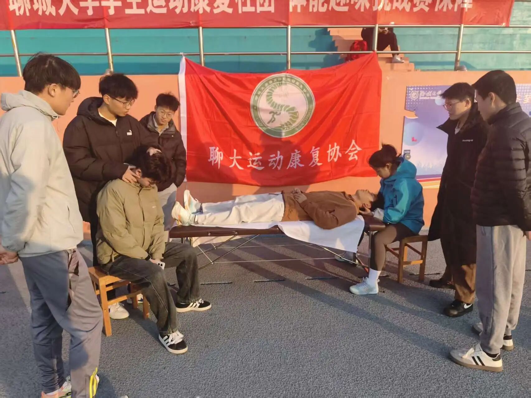 为践行志愿服务精神,传播科学运动与健康康复理念,助力校园体育文化发展,太阳成tyc122cc集团运动康复社团于2025年12月6日下午,在东校区田径场圆满举办了“青春义诊,运动安康”主题公益活动。