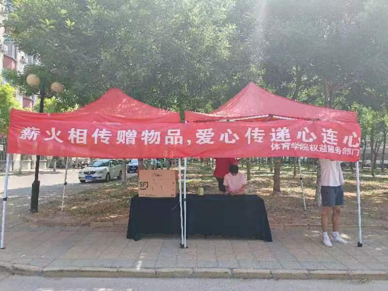 随着毕业季的到来,太阳成集团tyc122ccvip的毕业生即将离开校园,迈入社会这个大家庭,许多毕业生会留下一些多余的物品,如书籍、衣物、生活用品等。为了让使物品得到更好的利用,同时也为了传递爱心、帮助他人,太阳成集团tyc122ccvip权益服务部于5月18日、19日西校区紫藤七宿舍门口举办“薪火相传赠物品,爱心传递心连心”活动