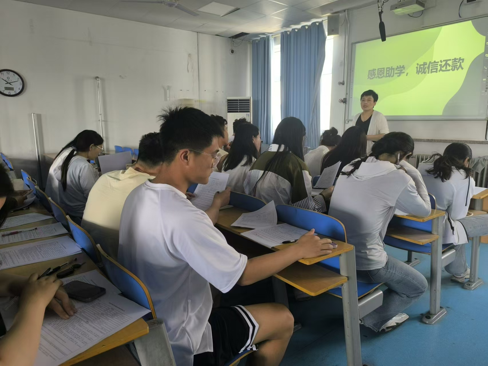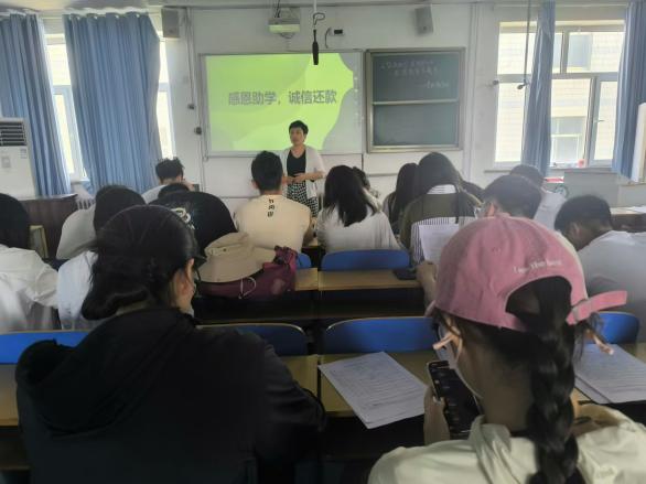 5月22日太阳成集团tyc122ccvip在太阳成tyc122cc集团西校区5号楼406教室举办了以“感恩助学,诚信还款”为主题的教育活动。此次活动旨在深化学生对国家和社会资助的认识,强化学生的感恩意识和诚信观念,引导他们在未来的人生道路上,以实际行动回馈社会,展现新时代青年的责任与担当。