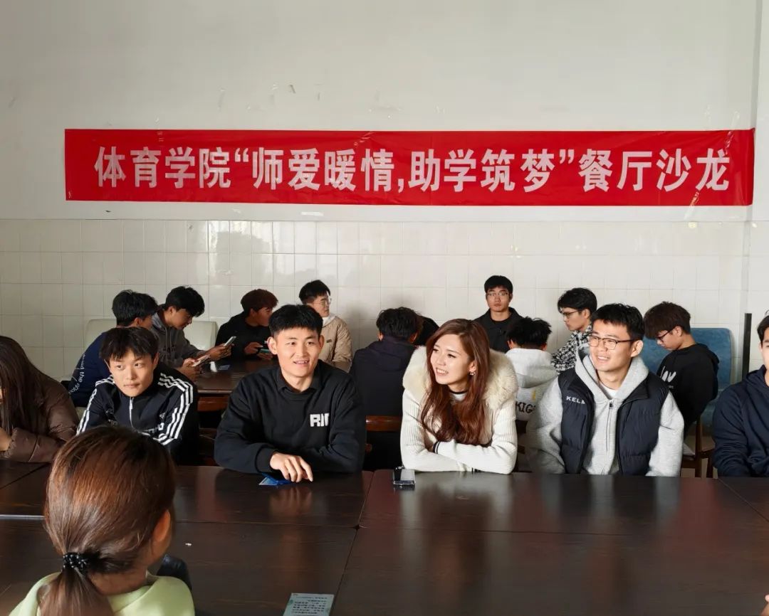 活动初始,孔令泽和王鑫亲切地询问同学们的基本情况,并说明各专业发展方向和就业前景,以及生活上存在的问题与困难,同时鼓励同学们分享自己的学习与生活。师生在轻松愉悦的用餐过程中交流学习方法和心得,同学们阐述自己学习和生活中的困惑,在用餐过程中无形间拉近了师生间的关系。