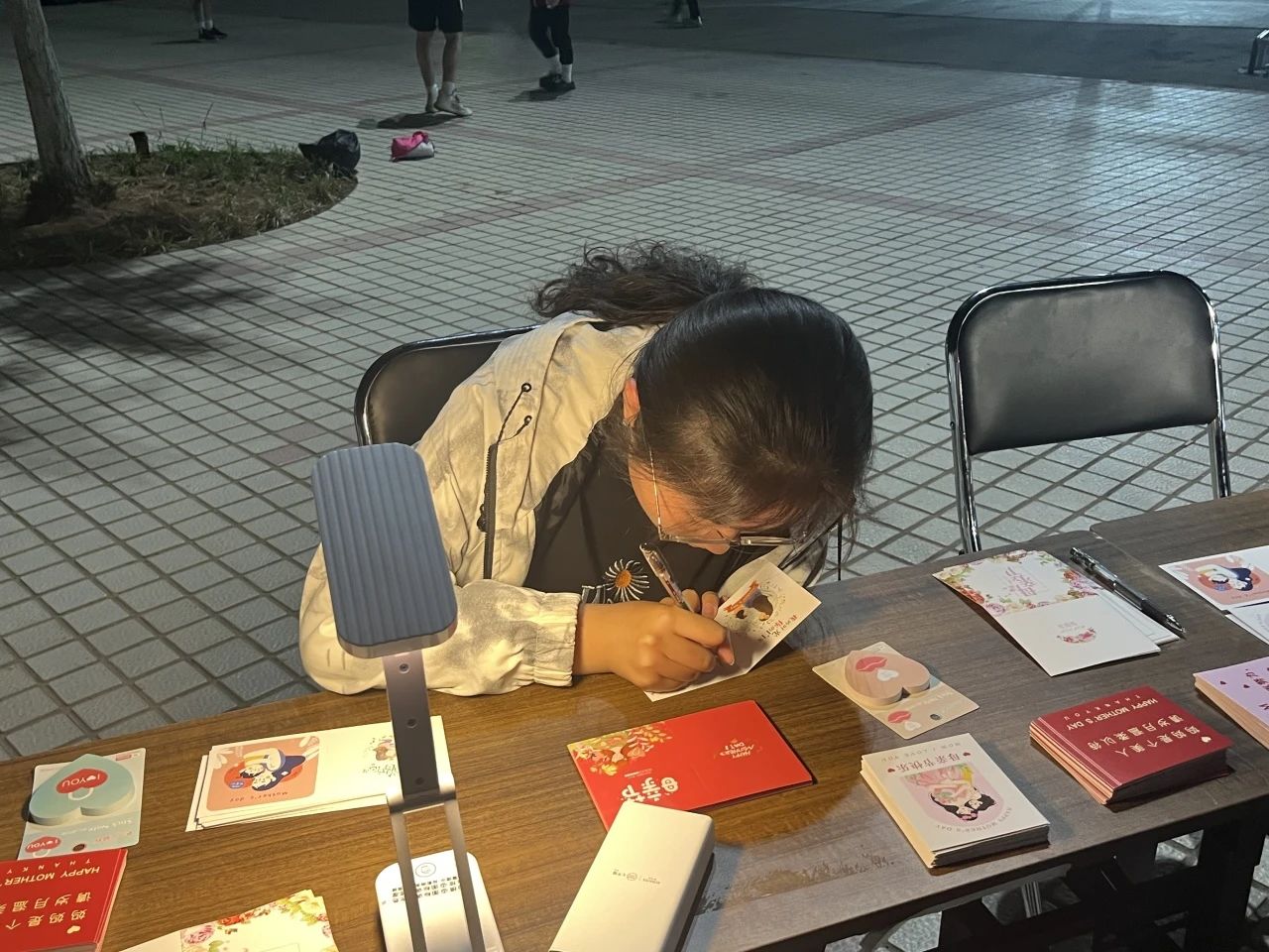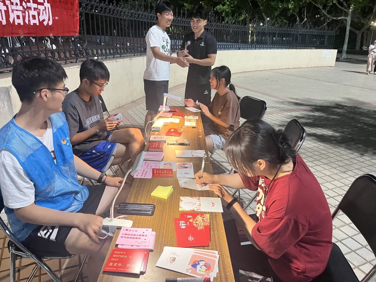 为了表达对母亲们无尽的敬意与深深的爱意,太阳成集团tyc122ccvip社会实践部举办了一场别开生面的母亲节贺卡寄语活动于西校区南田径场开展。