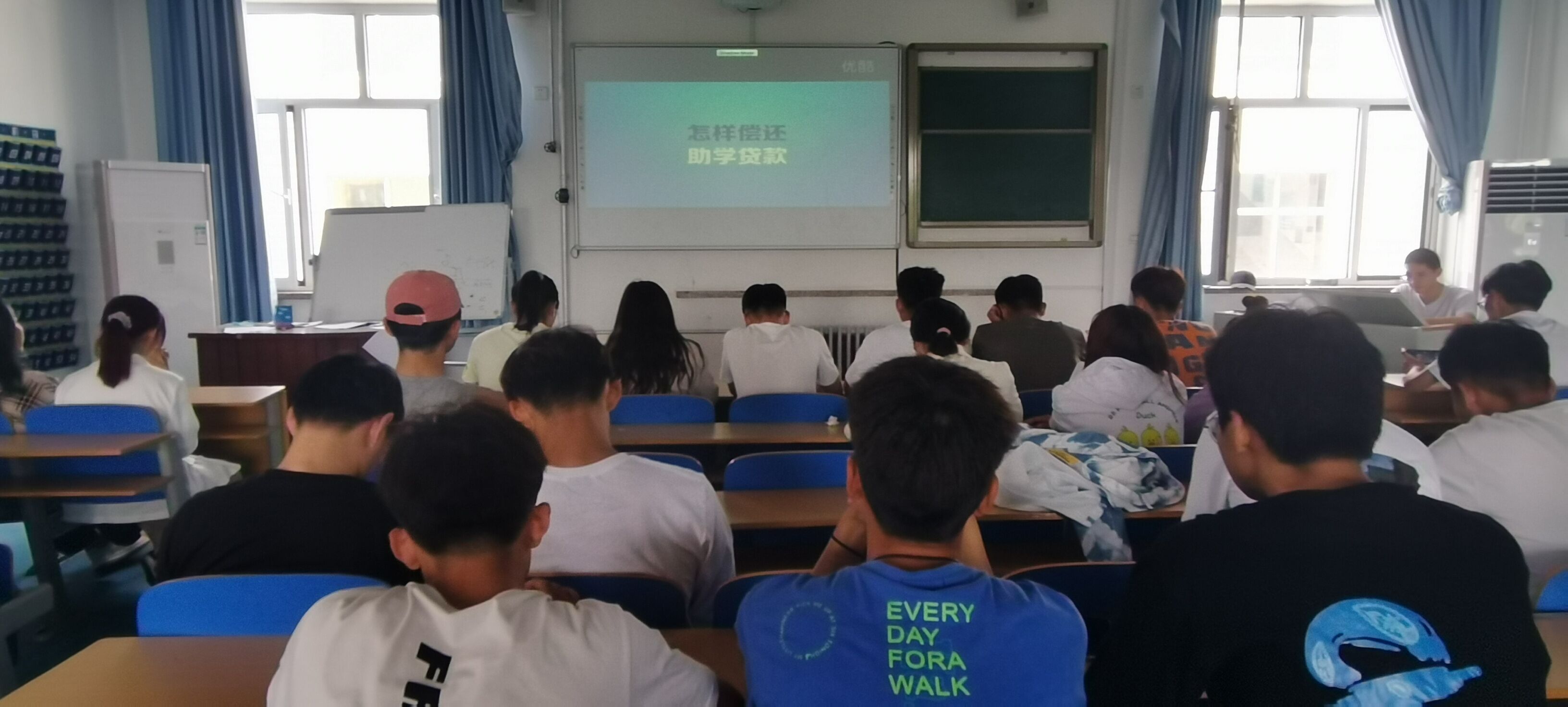 活动开始,负责人首先向同学们宣读了关于国家助学金的有关文件并传达了相关文件精神,开始播放影片,了解到助学贷款是促进教育公正公平的有效措施,是实施科教兴国战略、人才强国战略是落实科学发展观、促进社会和谐的具体体现。之后,负责人对学生讲述国家助学贷款的申请条件、办理程序、还款要求、信用记录等知识,同时通过案例告诫同学们要饮水思源,牢记国家和社会各界的关爱,树立远大理想,按约还贷,建立起良好的个人信用,为自己积累这一宝贵的财富。影片播放完后,同学们积极询问助学贷款的各项事宜,负责人向对助学贷款还有疑问的同学解答,从而使同学们对助学贷款有了一个全新的认识。