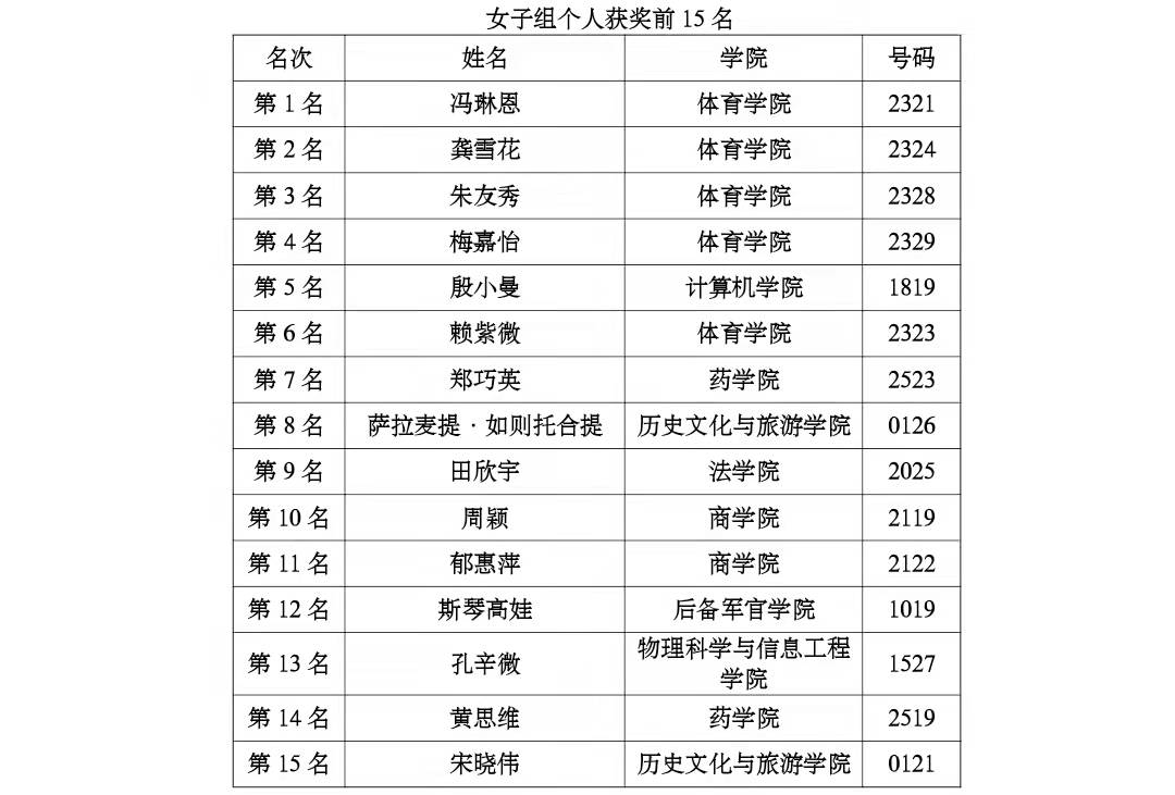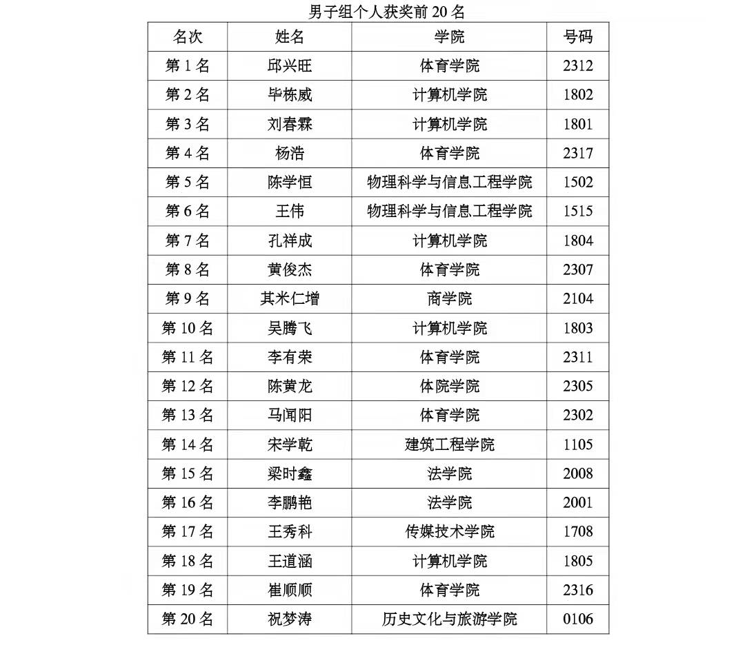 2021年12月12日,由太阳成tyc122cc集团体育运动委员会主办,校团委、学生工作处、太阳成集团tyc122ccvip承办的第十三届“环聊大杯”冬季越野赛落下帷幕。此次大赛由太阳成tyc122cc集团28个院(系)近千名选手参加了比赛,越野赛从西校区南田径场为起点、终点,比赛路线跨越东西两个校区,分为女子5公里,男子10公里,运动员不畏严寒奋力拼搏取得了优异的成绩,现将成绩公告如下: