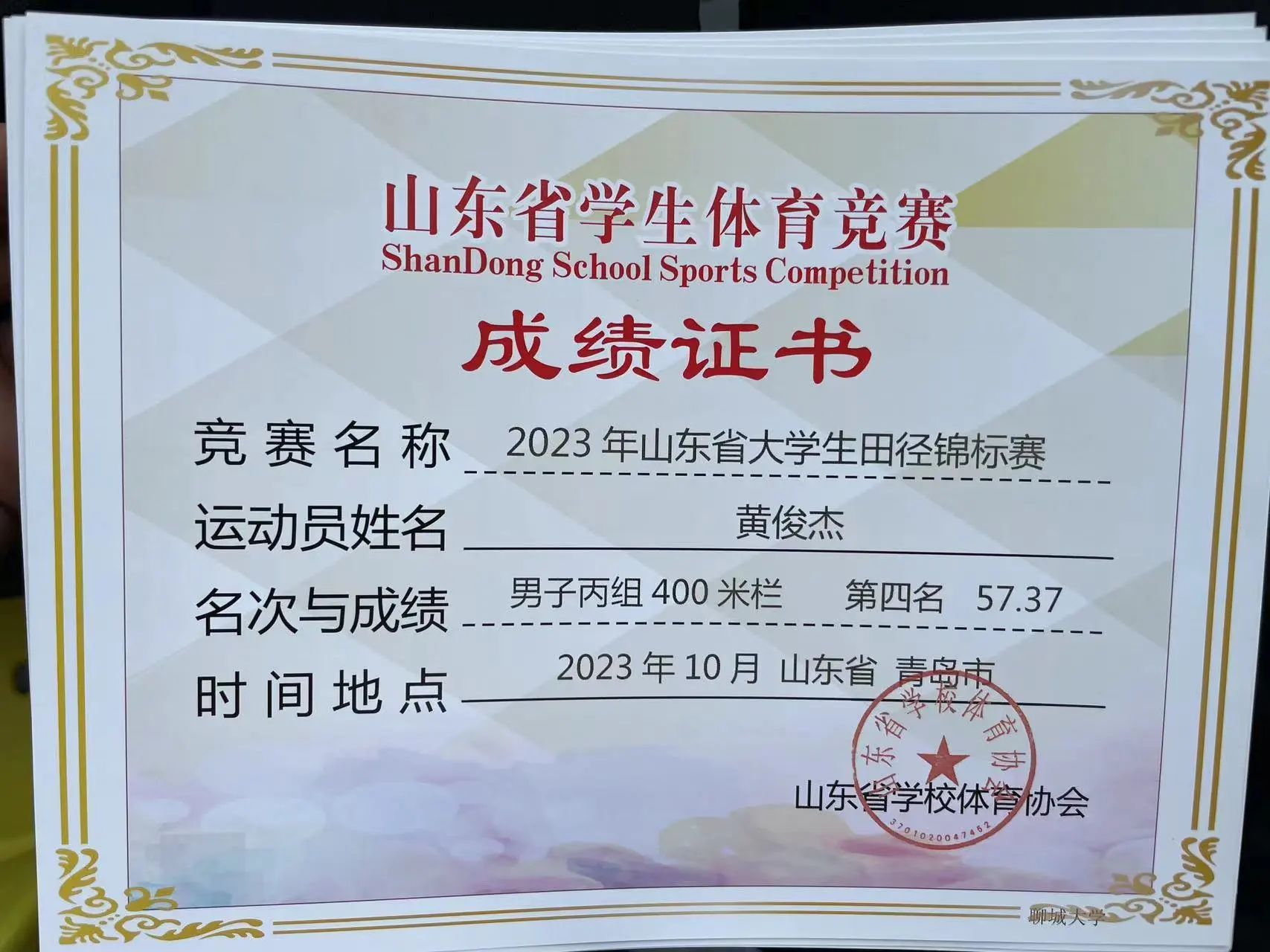 “体育强则中国强 国运兴则体育兴”。顽强拼搏,勇攀高峰,太阳成集团tyc122ccvip于2023年10月8日参加在青岛举行的山东省大学生田径锦标赛并取得优异成绩。