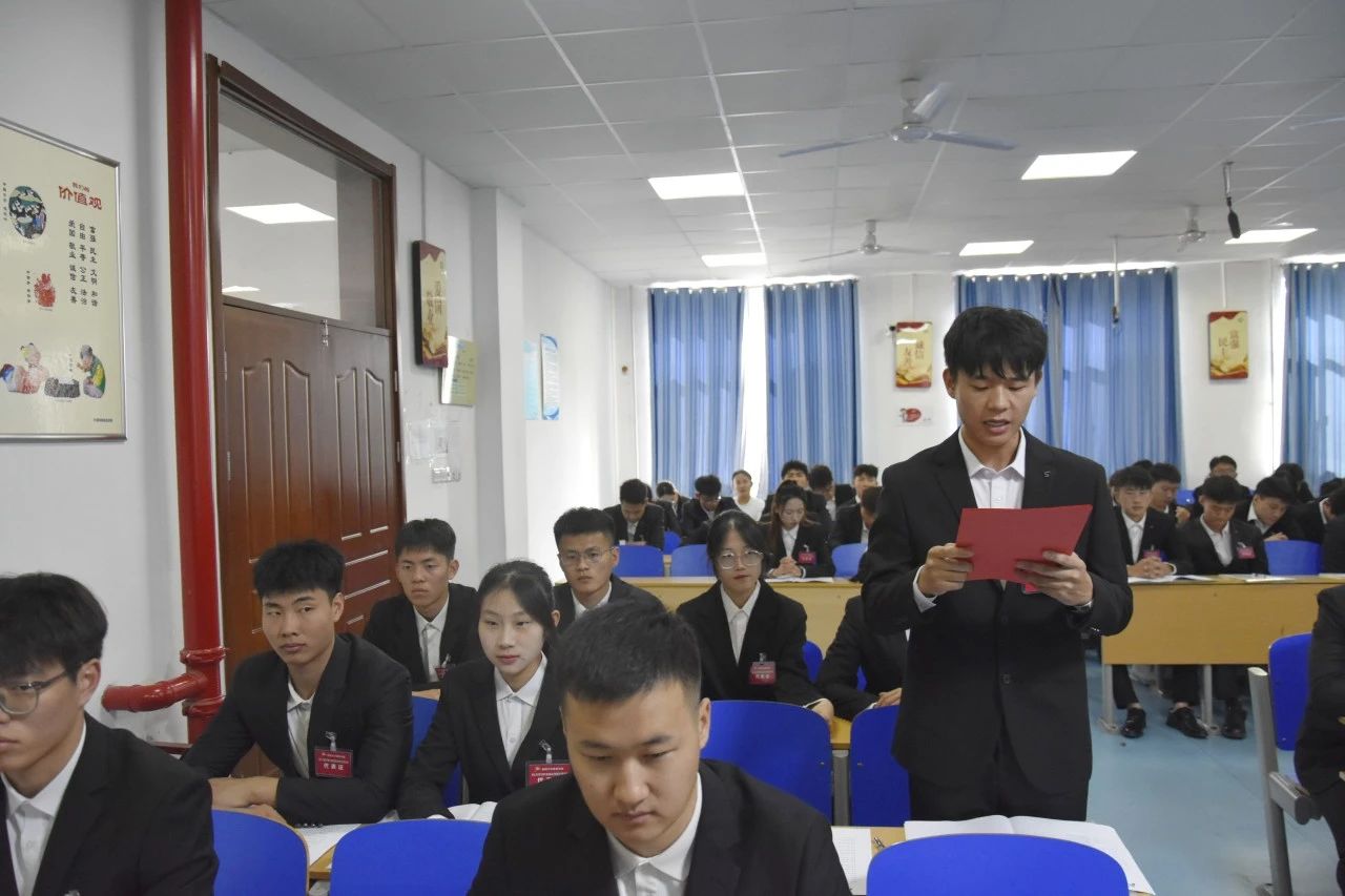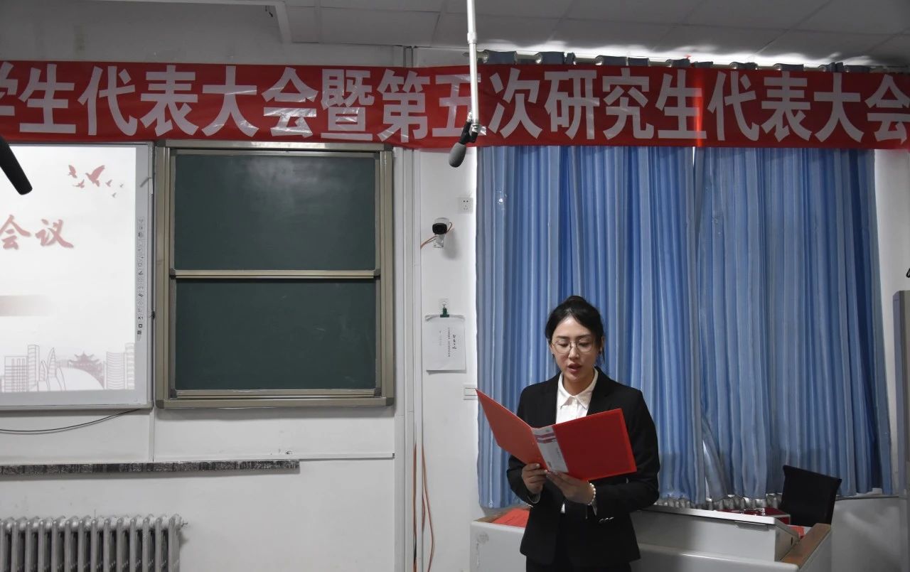 团委书记陈明代表学院团委致辞,肯定了上一届学生会和研究生会的工作成绩,同时也对未来的工作提出希望,希望在学院党委和校团委领导下,学院团委指导下,树立全心全意为同学服务的思想,充分发挥模范带头作用,坚定理想信念,增强服务意识,展现青春作为,并预祝本次会议圆满成功。与会期间,2023届学生会主席王榴代表2023届学生会作工作报告,全面总结了过去一年学院学生会组织各项工作完成情况及所获成就。