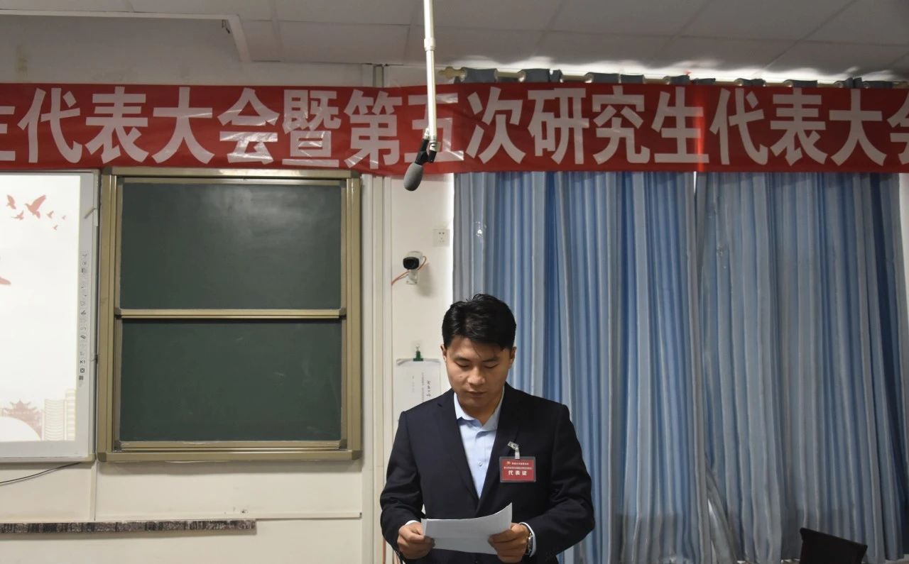 大会闭幕式中,由2024届研究生会主席韩宝龙代表研究生会发言。他对工作作出了规划和展望,并号召全体代表始终保持昂扬向上的精神状态,志存高远、脚踏实地,实干进取,为太阳成集团tyc122ccvip的学生工作带来新的生机和活力、迈向新台阶。