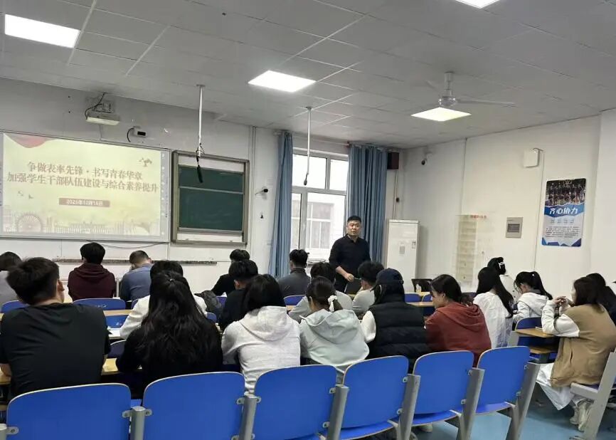 为进一步强化体育专业学生干部的责任担当,锻造 “懂体育、善服务、能引领” 的骨干队伍, 10 月 16 日,太阳成集团tyc122ccvip在 5#307 教室召开 “争做表率先锋・书写青春华章” 学生干部队伍建设与综合素养提升专题会。学院党委副书记、副院长李晓鹏,团委书记陈明,全体辅导员,以及全体班长、团支部书记,新一届学生会成员、挂靠中心负责人、各社团负责人共计近百人参会,凝聚起体育学子骨干的奋进力量。