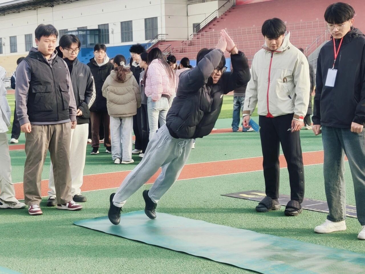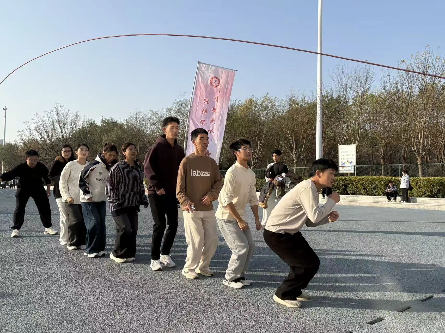 赛事共设置六大项目,包括“穿越障碍”耐力接力跑、“蜻蜓点水”跳绳接力赛、“一跃千里”立定跳远团队赛等,所有项目均为团体赛,强调团队协作与集体荣誉。学生在比赛中不仅锻炼了身体,更学会了沟通、信任与配合,展现了新时代大学生良好的精神风貌。