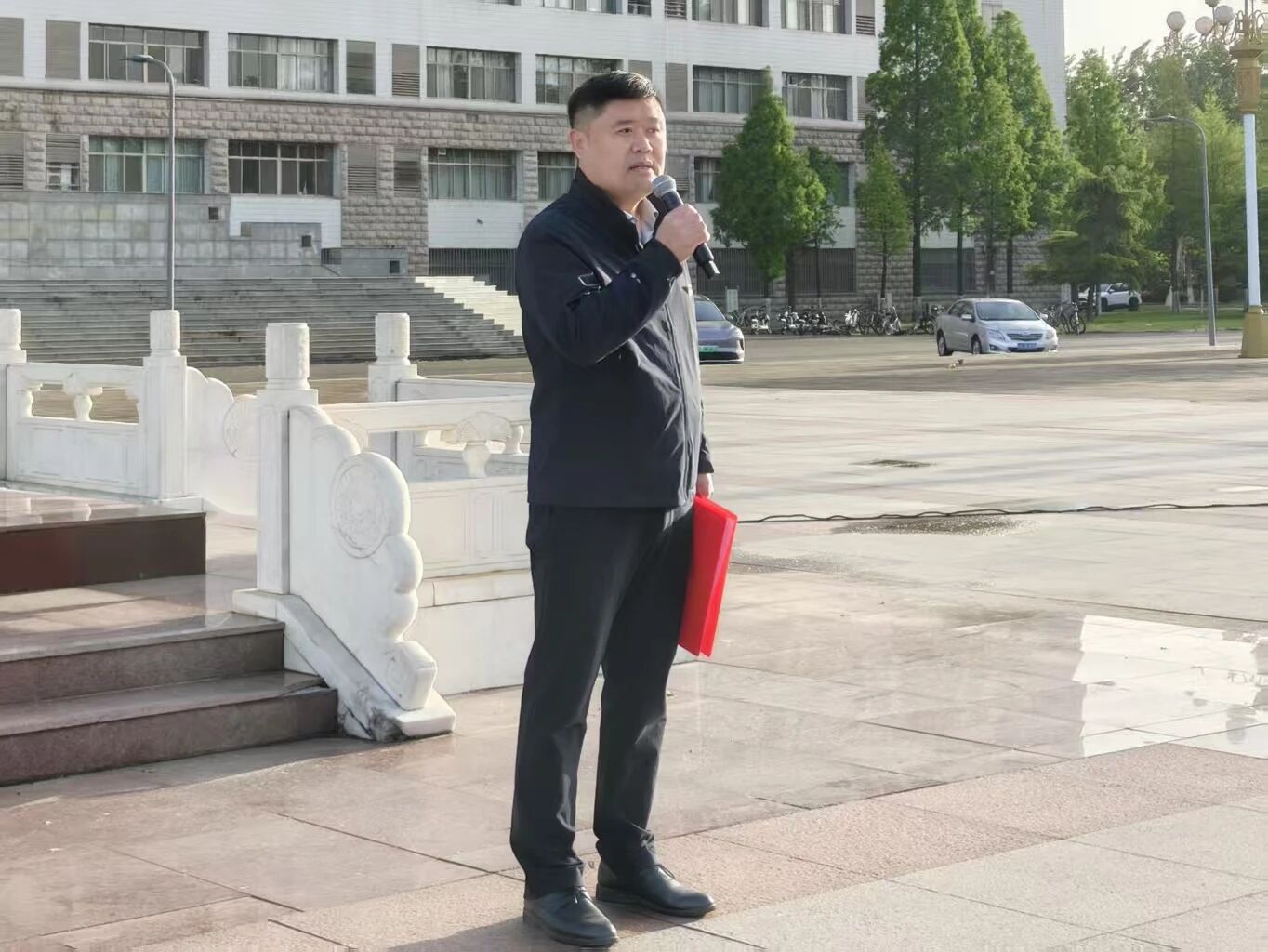 升旗仪式结束后,陈明为全体同学讲授专题微团课。他带领大家共同回顾1919年4月20日山东国民请愿大会的重要历史,深刻阐释其作为五四运动重要前奏的时代价值与历史意义,勉励同学们传承红色基因、赓续革命精神,以昂扬的青春姿态刻苦学习、躬身实践,在新时代新征程上充分展现体育青年的使命担当与奋进风采。