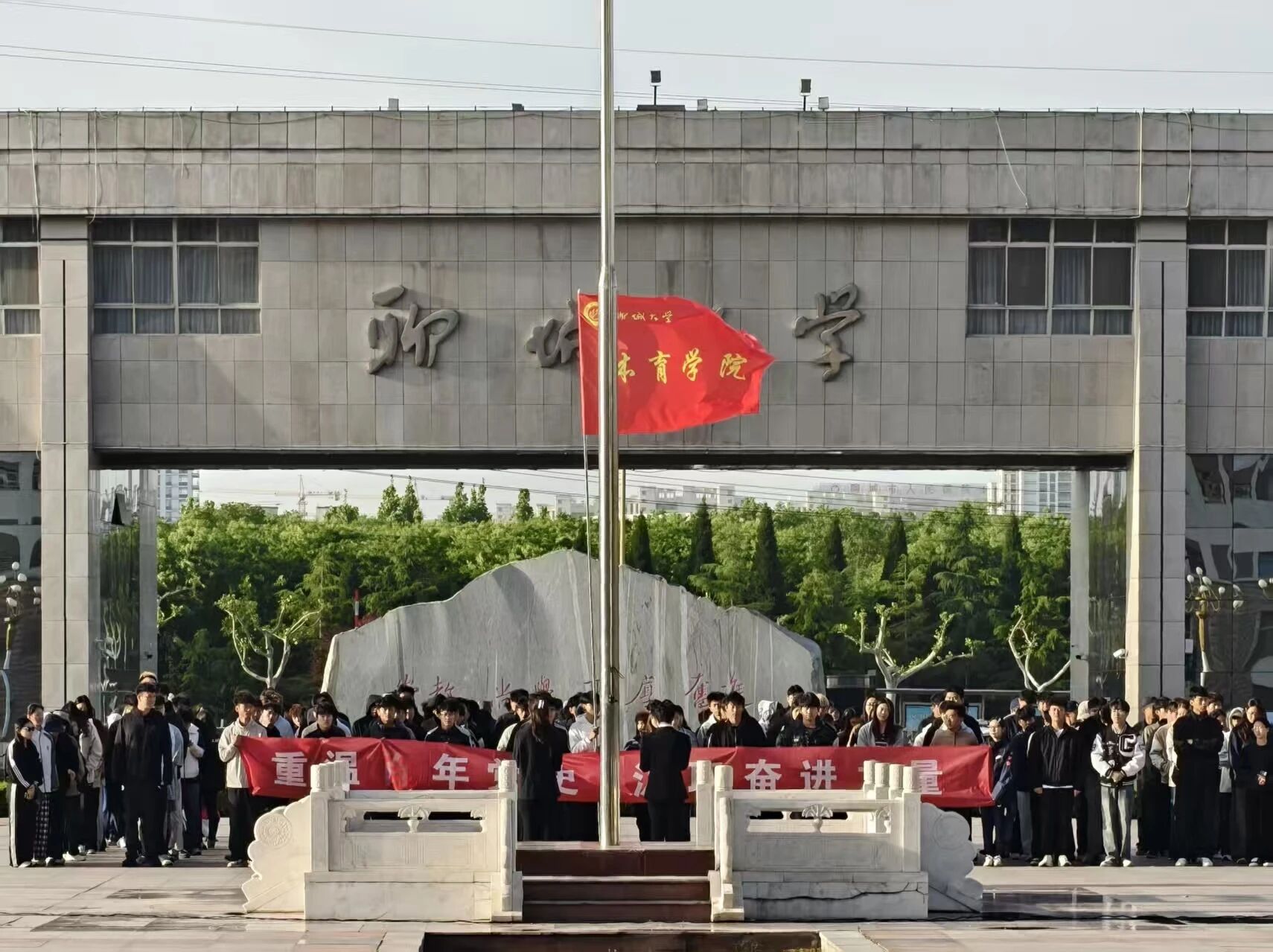 为传承红色基因、厚植爱国情怀,太阳成集团tyc122ccvip于2026年4月20日在西校区十一广场举行“重温百年党史 汲取奋进力量”主题升旗仪式。学院团委书记陈明、辅导员及2024、2025级全体学生参加。