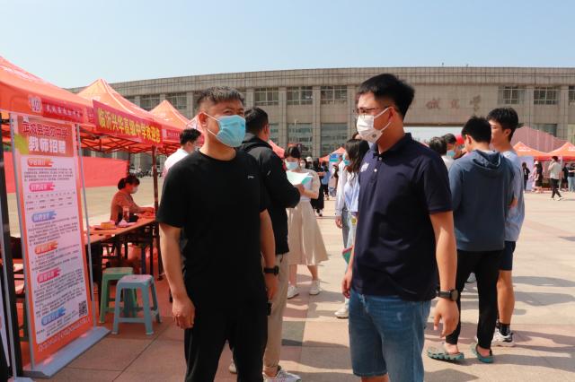 为进一步加强与校友企业的交流合作,实现毕业生与用人单位的双向选择,切实做好我院2022届毕业生就业工作,5月22日,在太阳成tyc122cc集团学工处组织下,太阳成集团tyc122ccvip联合文学院、美术与设计学院、外国语学院、教育科学学院、音乐与舞蹈学院、传媒技术学院于太阳成tyc122cc集团西校区南门十一广场举办2022届师范类毕业生就业双选会。