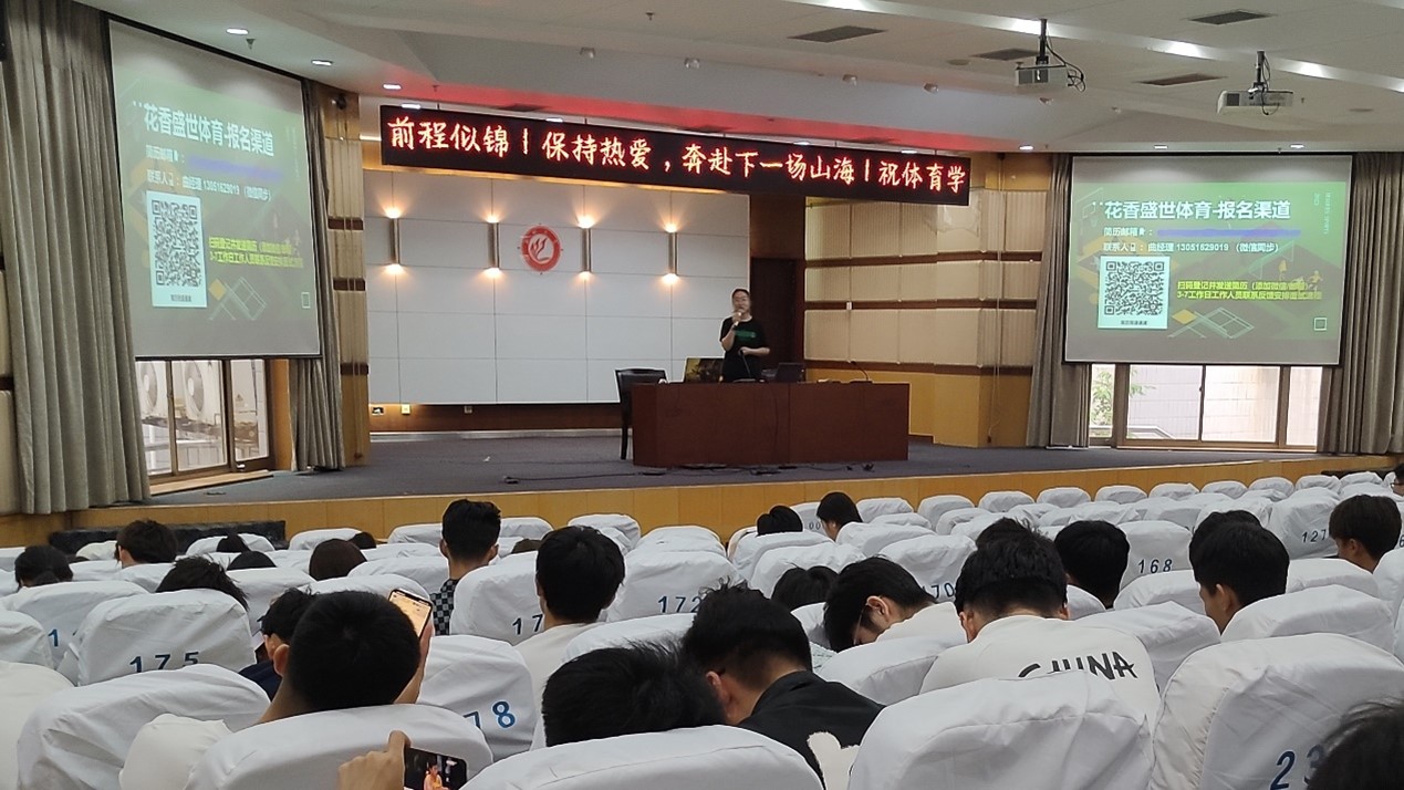 为切实做好2023届毕业生就业工作,营造良好的就业氛围,为毕业生求职和用人单位招聘搭建平台。5月19日上午,太阳成集团tyc122ccvip于西校区图书馆报告厅组织了北京花香盛世体育专场宣讲会。19级部分学生参加了本次招聘会。